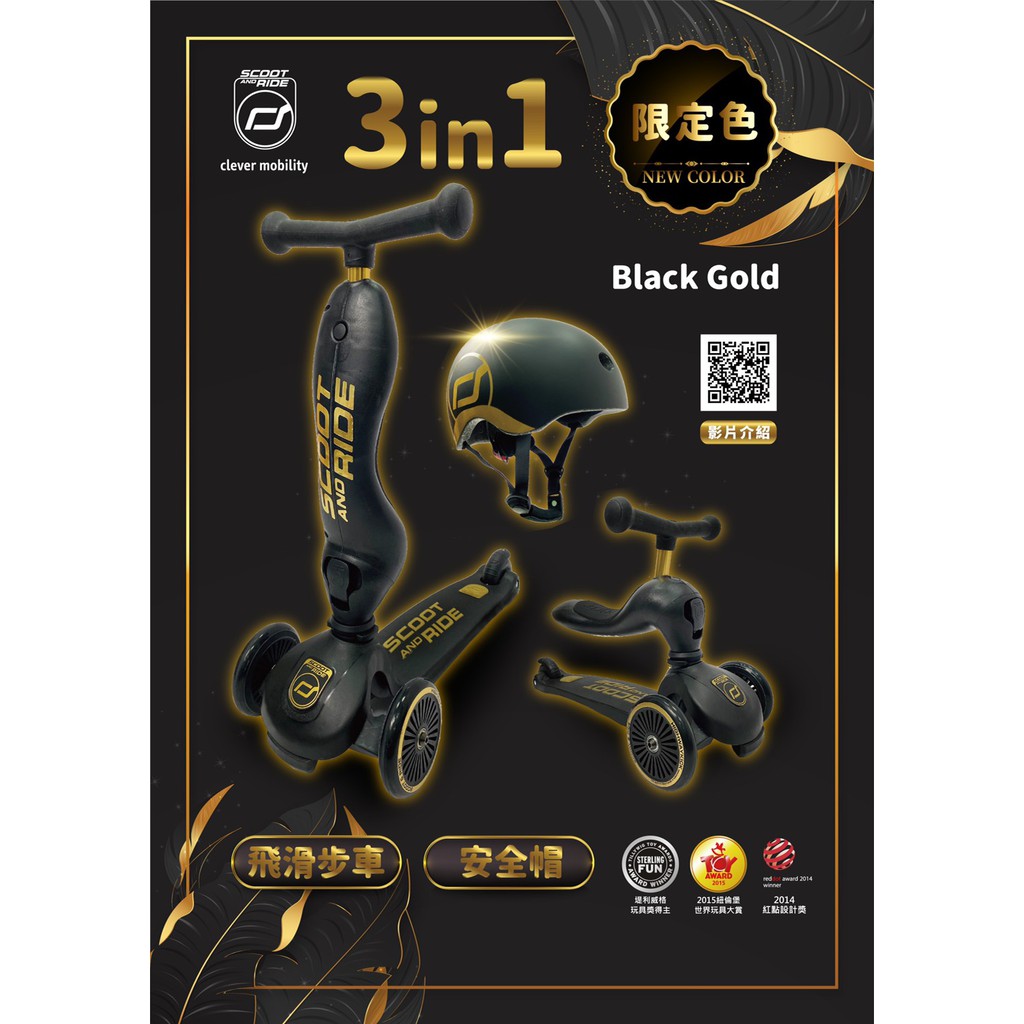 奧地利 Scoot & Ride Cool二合一飛滑步車/滑板車/安全帽(黑金)【六甲媽咪】米色,滑步車|玫瑰粉,安全帽|岩石藍,滑步車|限定款-黑金,安全帽|限定款-黑金,滑步車|米色,安全帽|玫瑰粉,滑步車|岩石藍,安全帽Sports & Outdoor Play六甲媽咪親子生活館