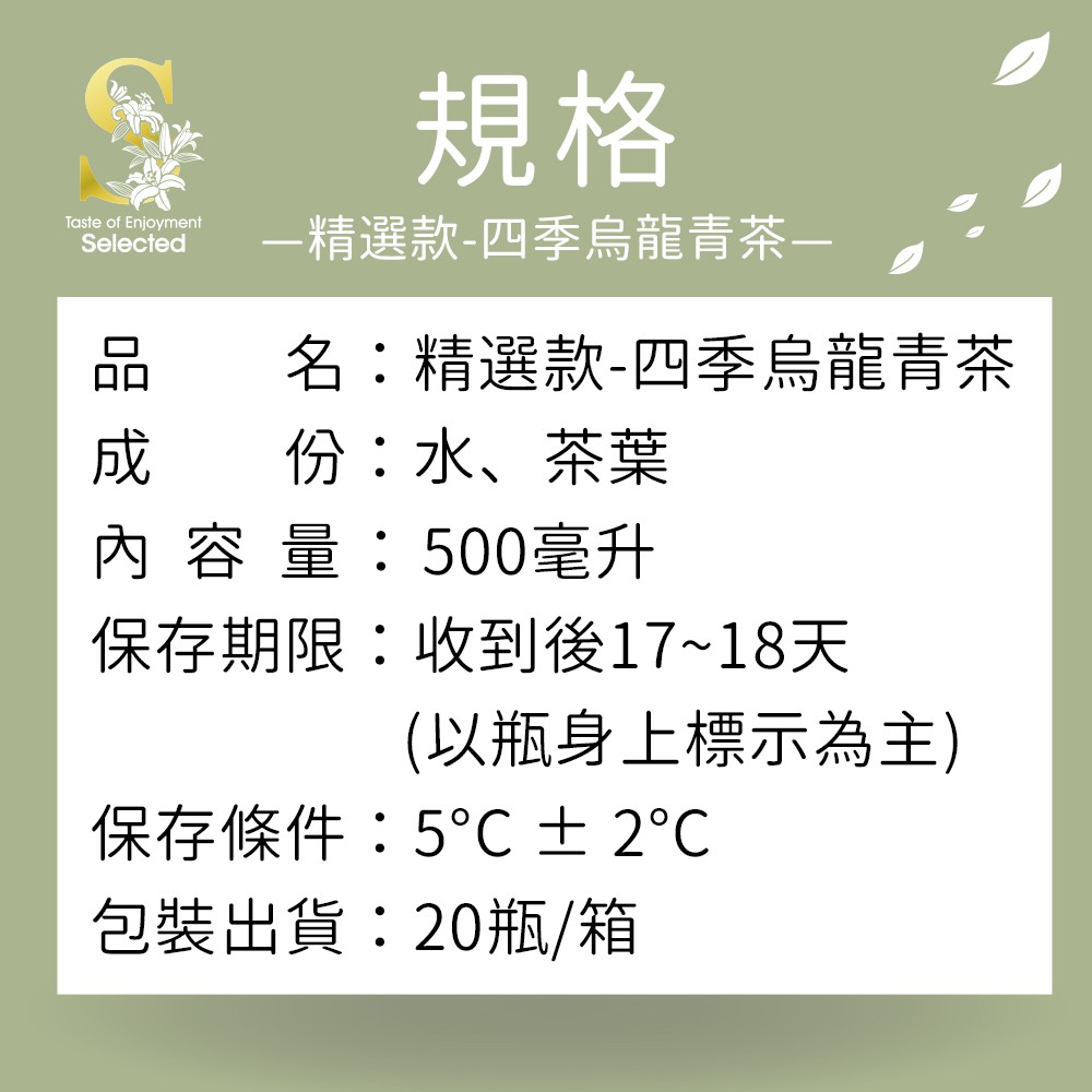 【六奉茶莊】精選款-四季烏龍青茶冷泡茶-500ml-25瓶/箱-低溫宅配【六奉茶莊】精選款-四季烏龍青茶冷泡茶-500ml-25瓶/箱-低溫宅配Tea & Tea Bags六奉茶莊品牌旗艦館