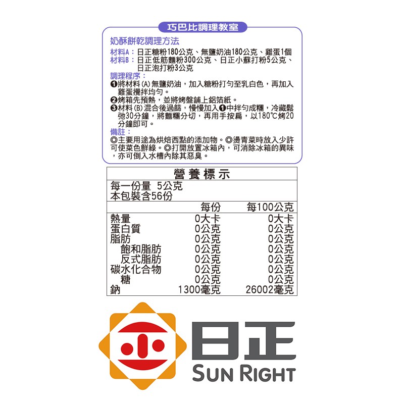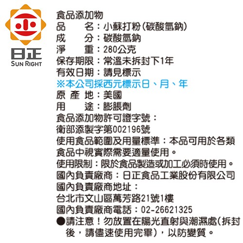 【日正食品】優質小蘇打粉280g 韓國碰糖 食品級 烘焙用小蘇打 餅乾製作小蘇打粉280gBaking Powder & Soda日正食品官方賣場