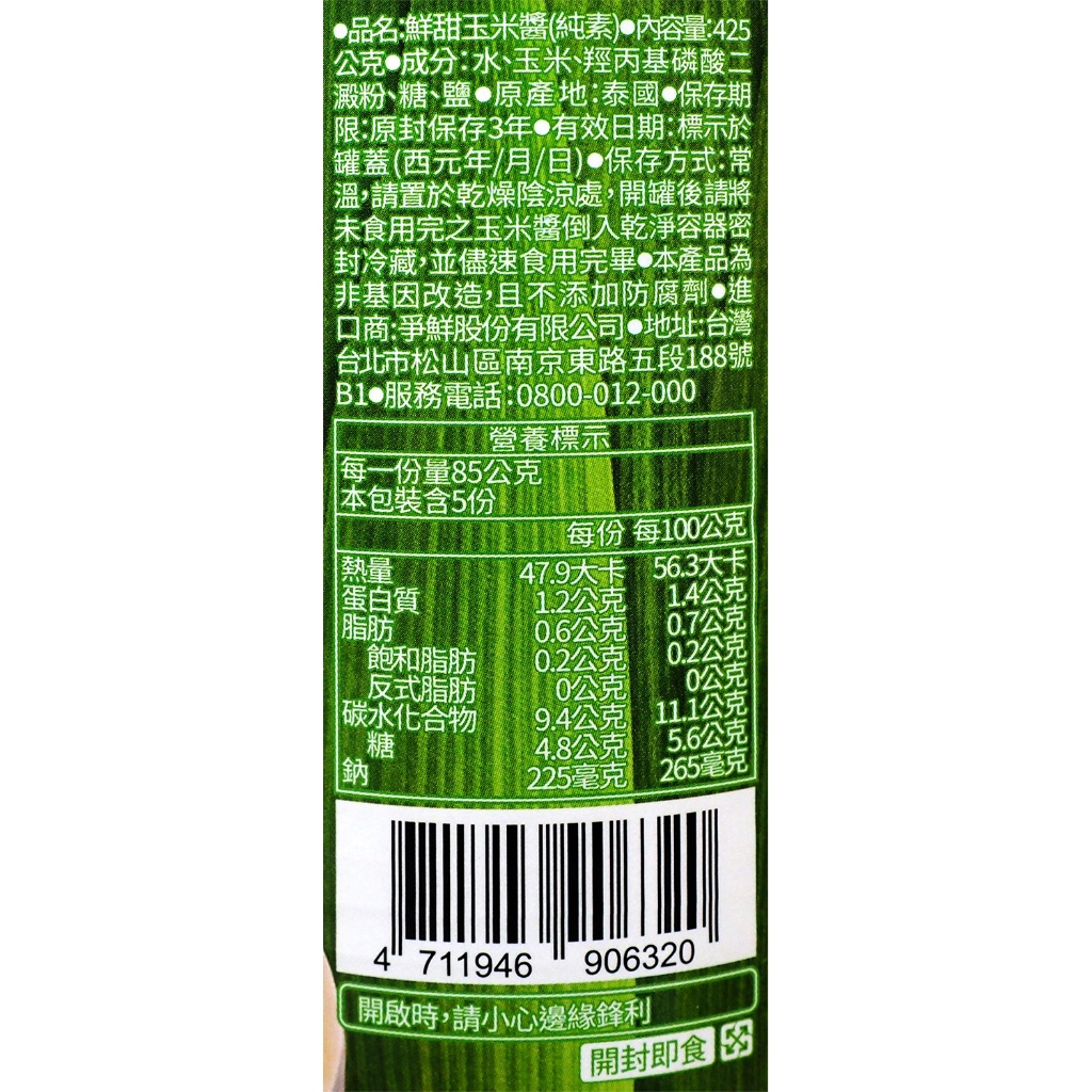 爭鮮 鮮甜 玉米醬 (純素) 425g 玉米醬罐頭 玉米濃湯 酥皮濃湯 早餐 露營 宵夜 【小三美日】DS026544單一Canned Food小三美日