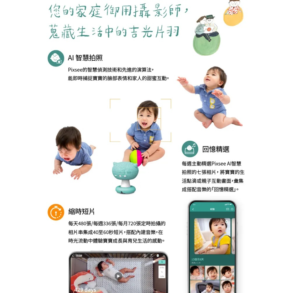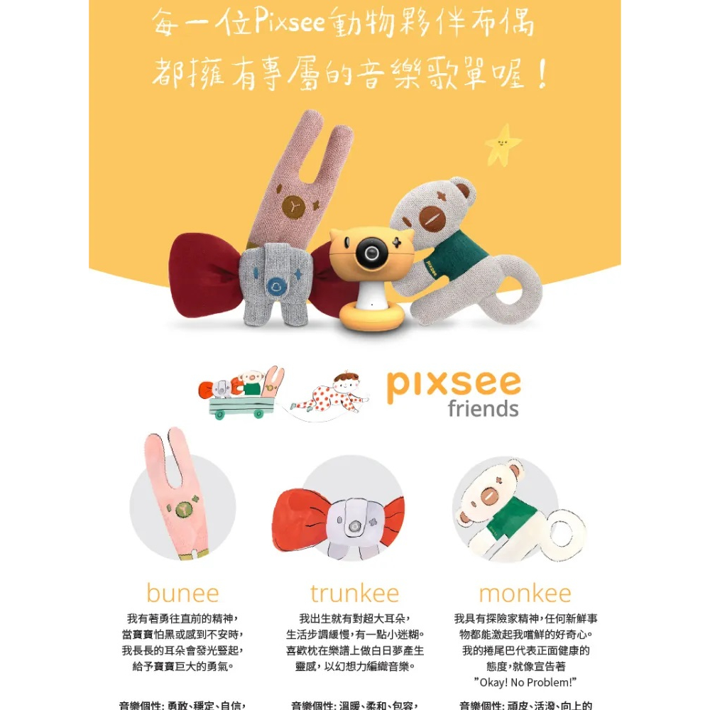 Pixsee Play and Pixsee Friends智慧寶寶攝影機|嬰兒監視器|監視器|互動玩具套組【六甲媽咪】主機+支架+Bunee布偶(兔子)|主機+支架+Monkee布偶(猴子)|主機+支架+Trunkee布偶(大象)Monitors六甲媽咪親子生活館
