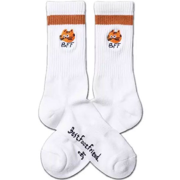 BEST FOOT FRIEND BF25011-WH GINGER CAT 橘貓 BFF 中筒襪 / 小腿襪 (白色)白色 男女22~31cm可穿化學原宿 Chemistry
