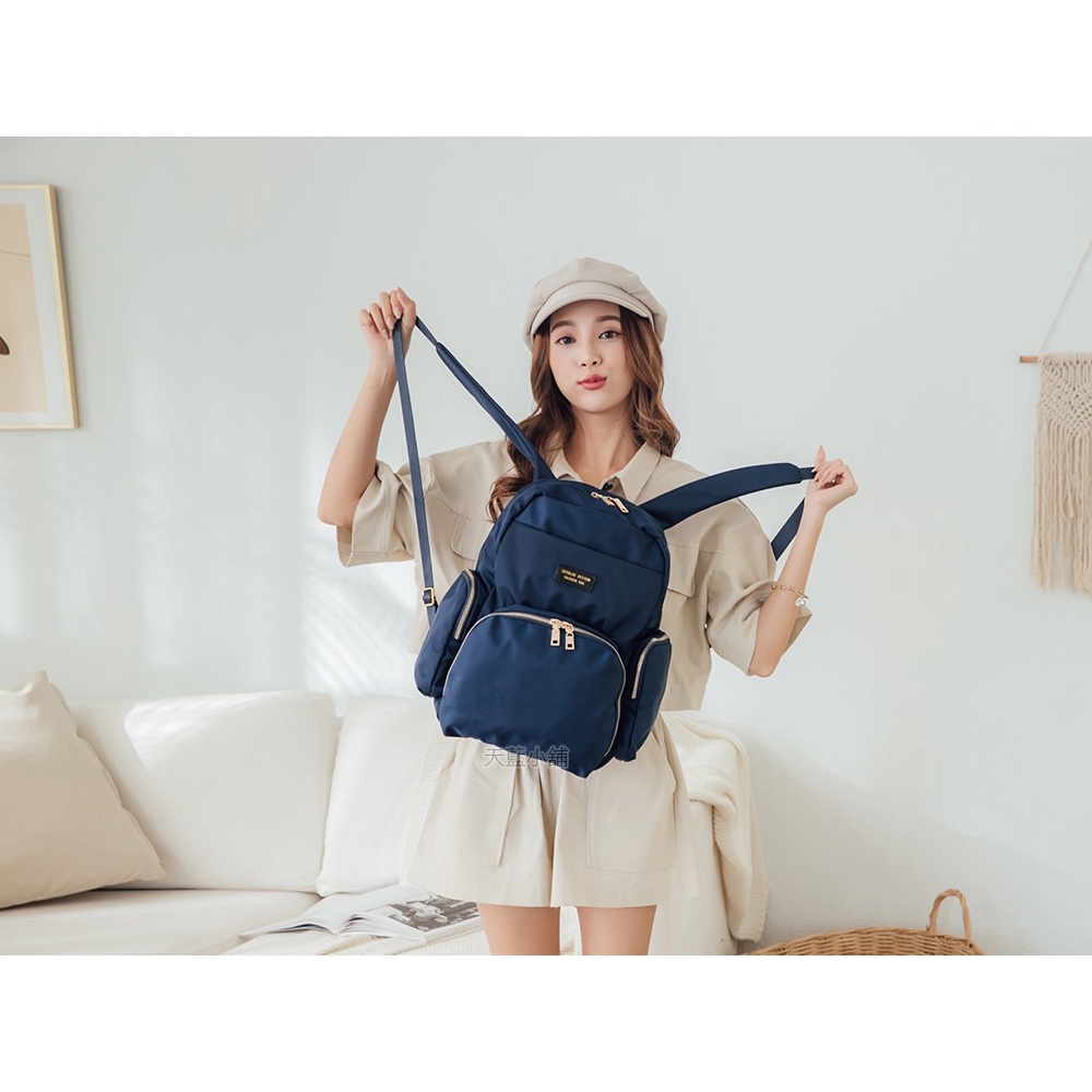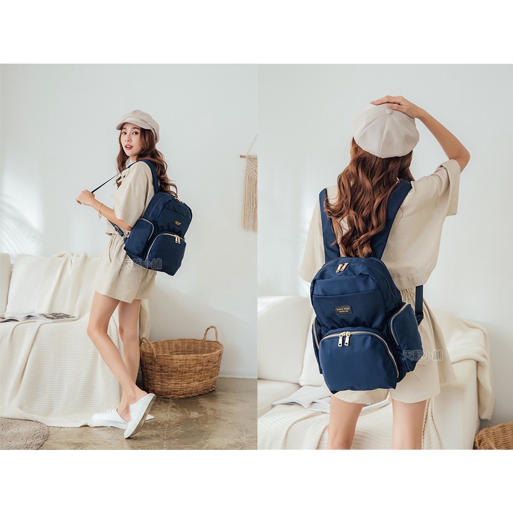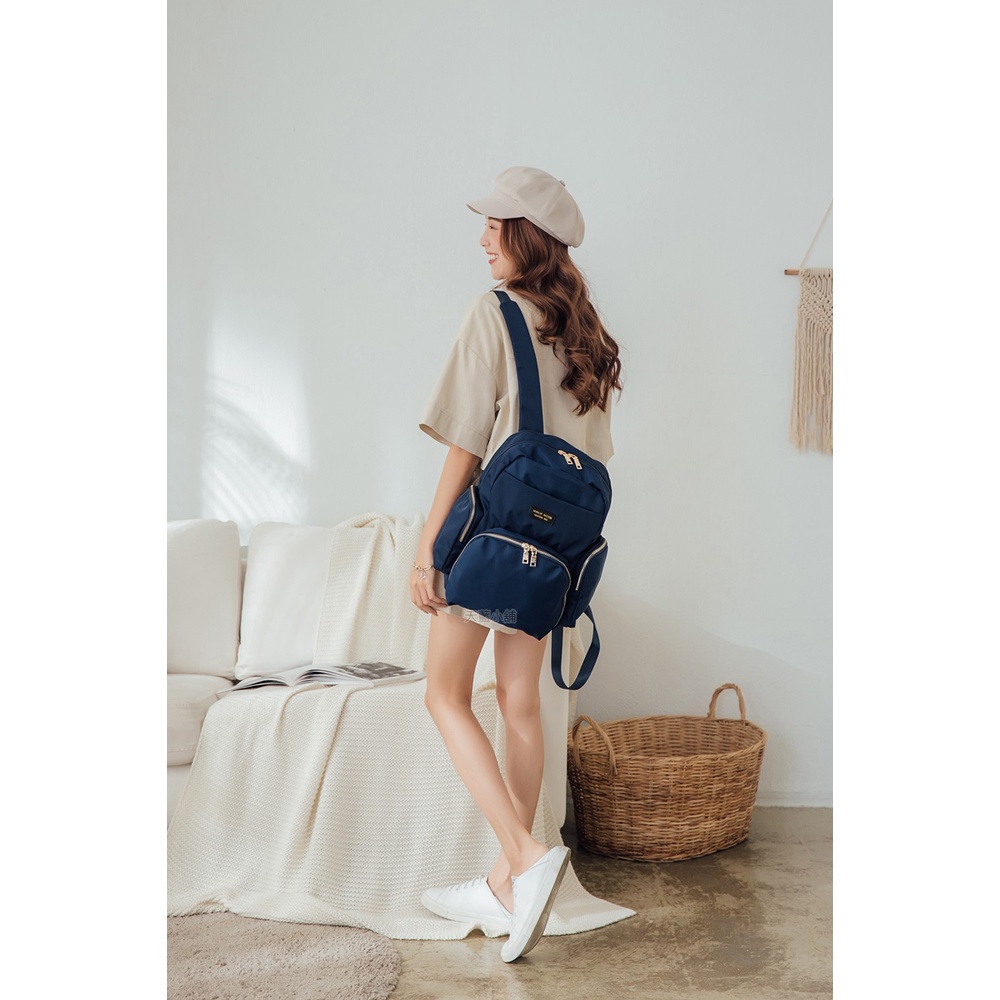 天藍小舖-skyblue自訂大圓弧拉鍊尼龍後背包-共4色-A12122031粉色|棕色|深藍|黑色天藍小舖 SkyBlue