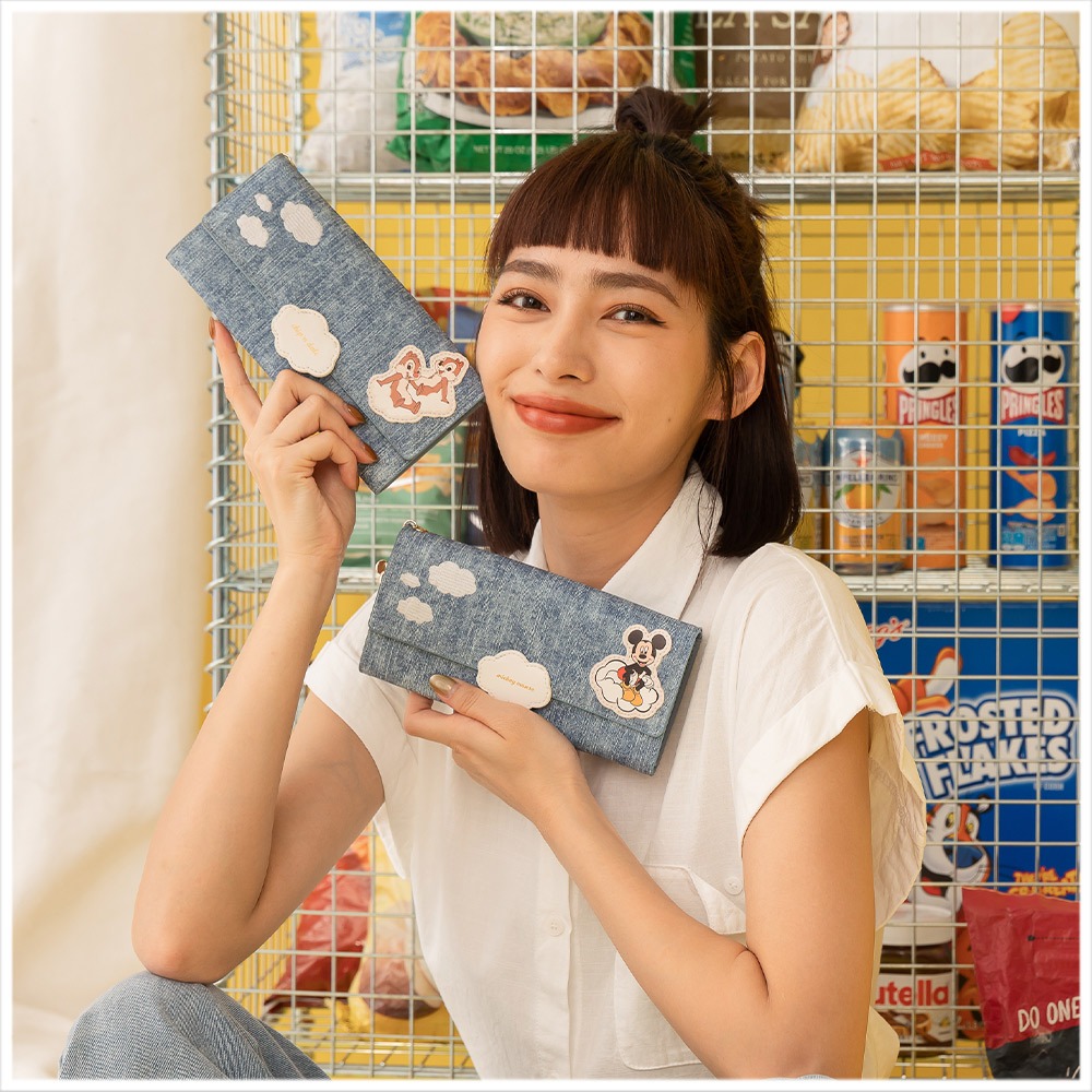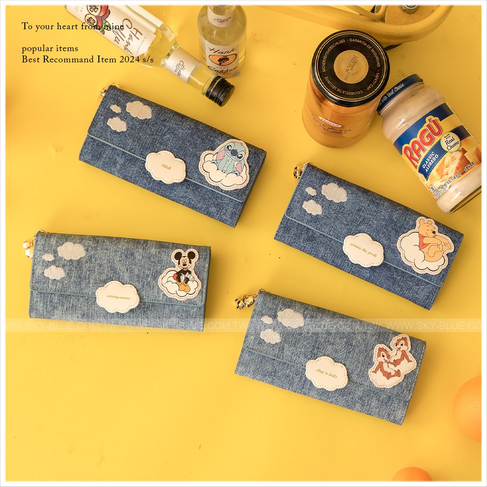 天藍小舖-迪士尼系列雲朵飄飄仿牛仔皮革長夾-共4色-【A08081780】米奇|維尼|史迪奇|奇奇蒂蒂Long Wallets天藍小舖 SkyBlue