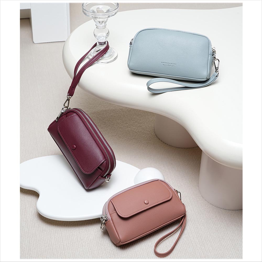天藍小舖-翻蓋包釦雙層手拿/斜背小包-共5色-A17175041粉色|酒紅|棕色|黑色|藍色天藍小舖 SkyBlue