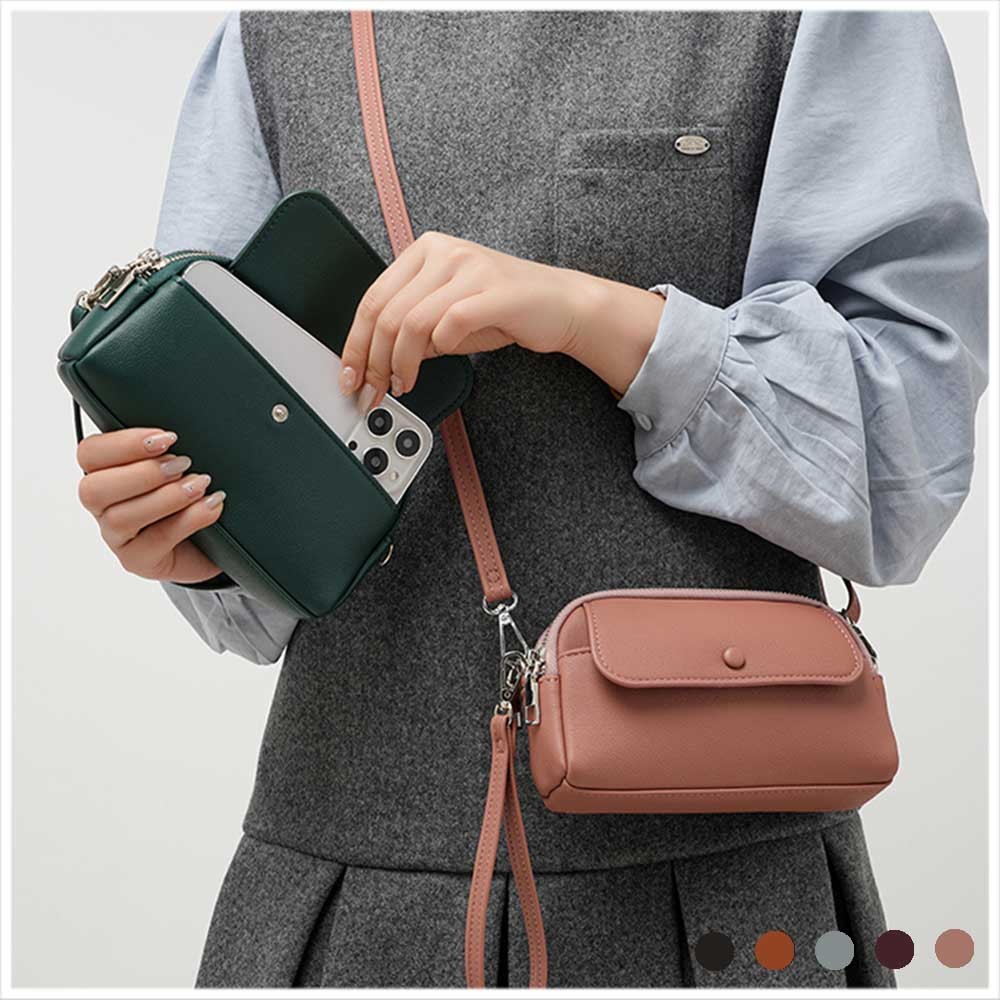 天藍小舖-翻蓋包釦雙層手拿/斜背小包-共5色-A17175041