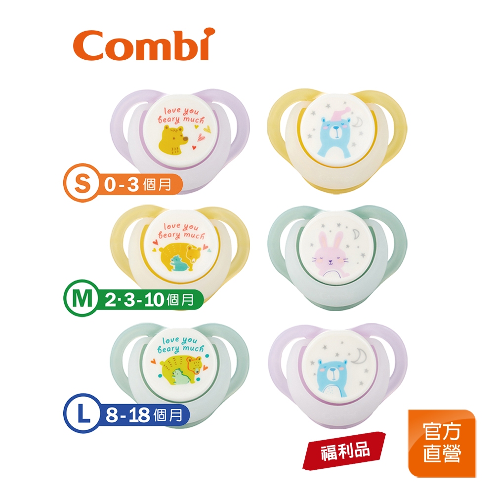 【Combi】(原廠福利品) 睡眠夜用 安撫奶嘴 二入組L 親子熊(綠)+夜夢熊(紫)|S 愛心熊(紫)+夜夢熊(黃)|M 親子熊(黃)+夜夢兔(綠)Pacifiers日本Combi│REGASSA官方旗艦館
