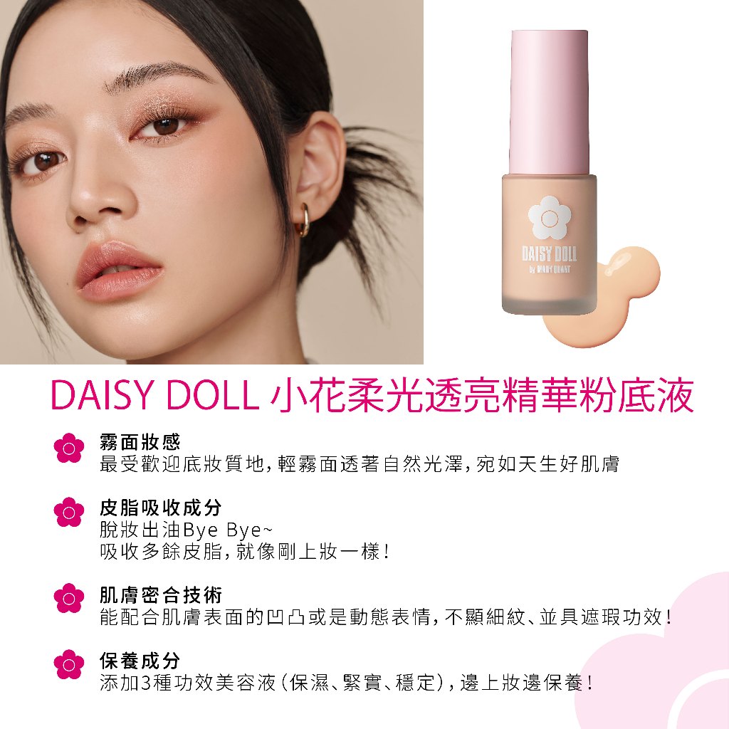 【DAISY DOLL】小花柔光透亮精華粉底液28mL (多款可選)01裸光|02明亮|03自然Face日日美鋪官方旗艦店