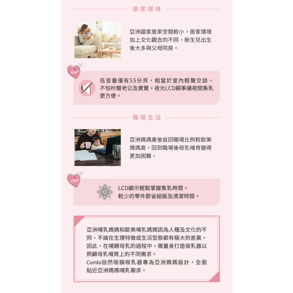 【Combi】新自然吸韻電動吸乳器|單邊|可支援雙邊模式|搭配寬口儲乳奶瓶新自然吸韻電動吸乳器(單邊)Breastfeeding日本Combi│REGASSA官方旗艦館
