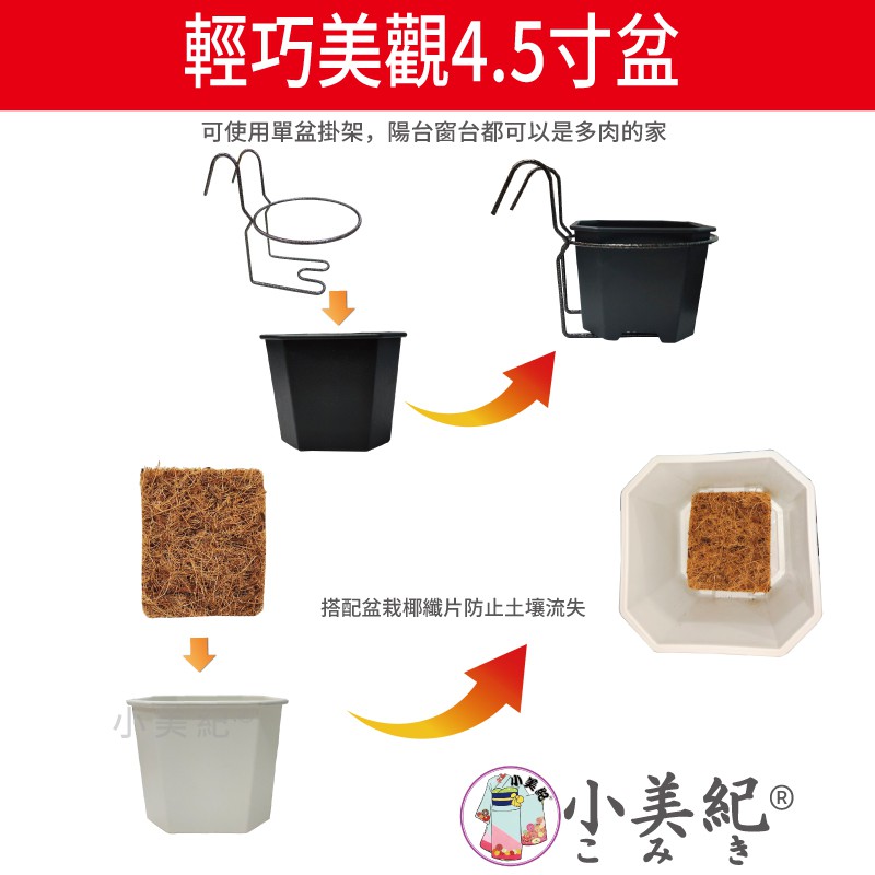 【小美紀】4.5寸八角盆、椰纖片、掛架(園藝資材)花架 多肉單盆掛架 多肉盆 造景 多肉花盆 園藝掛架 園藝裝飾 小美紀4.5寸多肉八角盆-白202H|4.5寸多肉八角盆-黒203H|(2片入)盆底椰纖片3H|金銅色單盆用掛架+4.5寸多肉八角盆白|金銅色單盆用掛架+4.5寸多肉八角盆黑|4.5寸單盆用掛架-白色187H|4.5寸單盆用掛架-金銅色187HPots & Planters小美紀 l Komiki