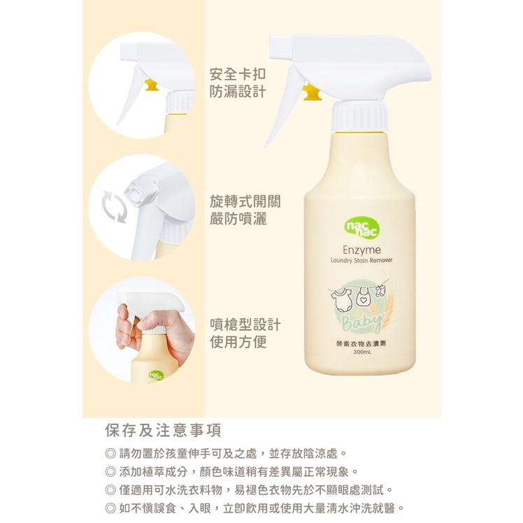 nac nac 酵素衣物去漬劑300ml噴瓶裝+重裝瓶|衣物去漬劑瓶裝-有噴頭|重裝瓶-無噴頭Baby Laundry Detergent六甲媽咪親子生活館