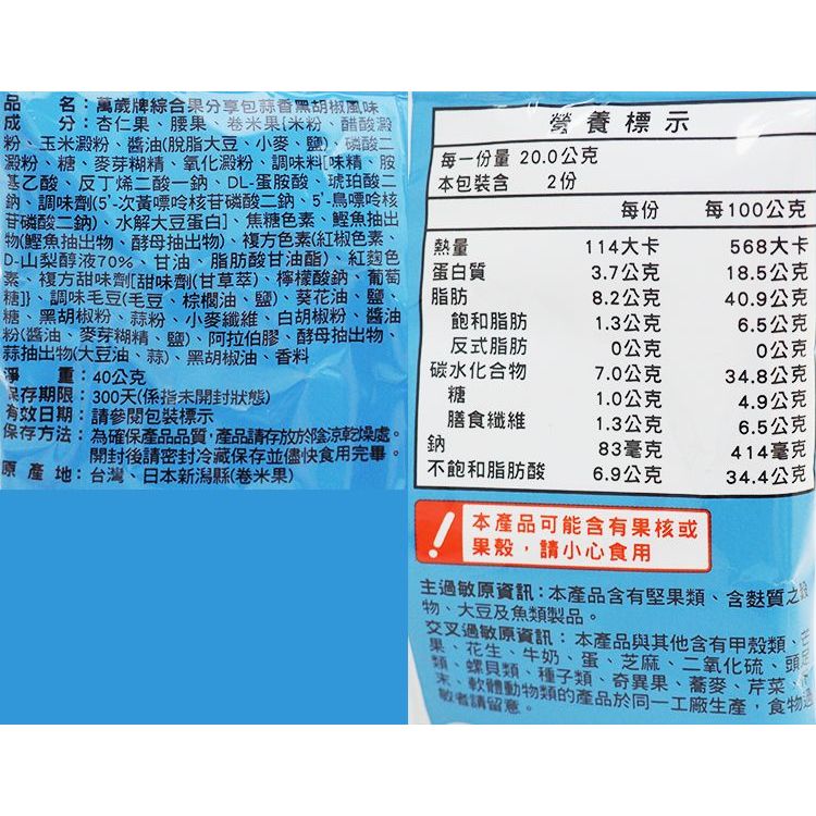 萬歲牌 綜合果 分享包 (蒜香黑胡椒風味) 40g 好市多 熱銷 堅果 零食 伴手禮 下酒菜【小三美日】DS026234單一Nuts小三美日