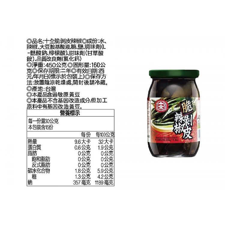 十全 脆剝皮辣椒(450g)【小三美日】空運禁送 DS007730單一Preserved Vegetables小三美日