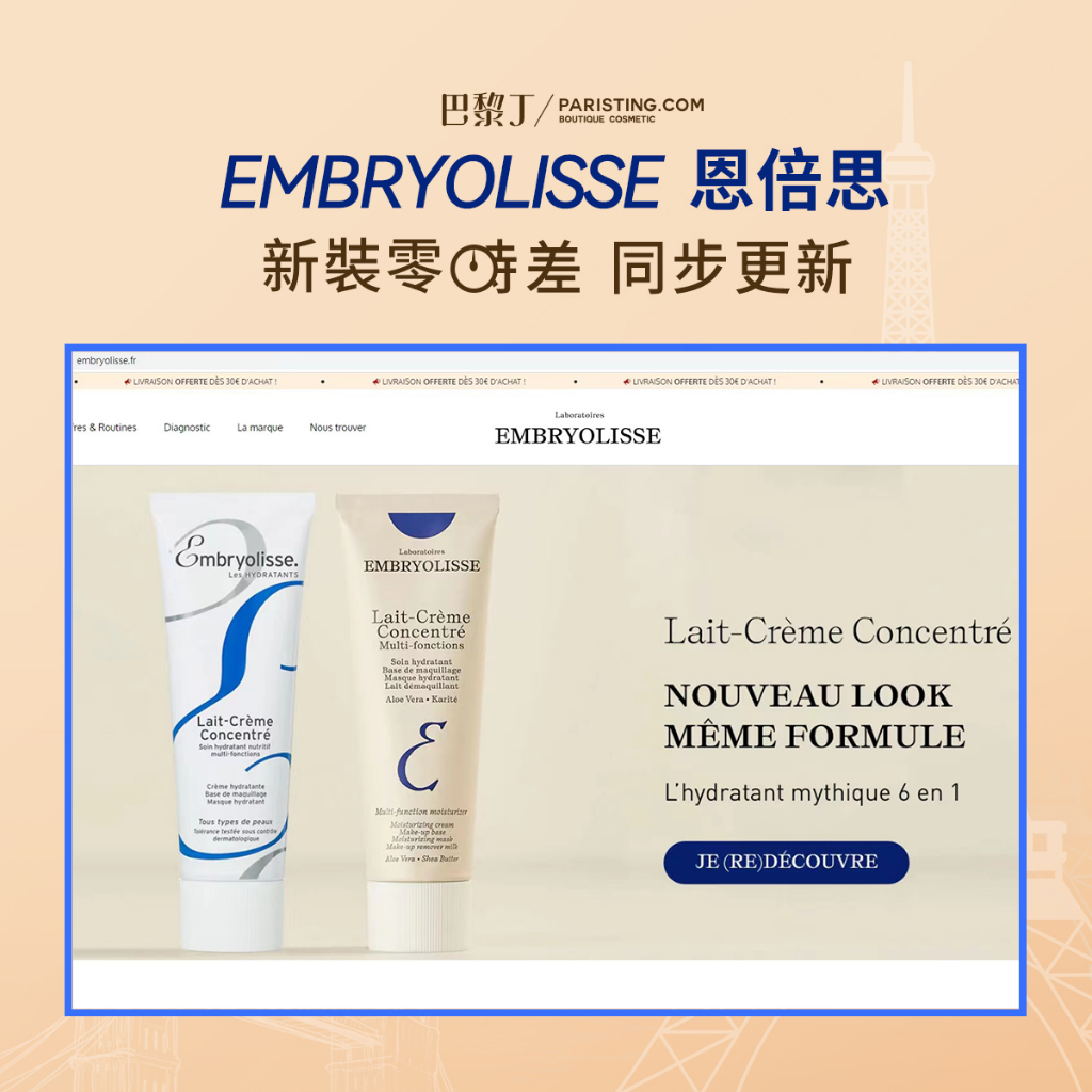 Embryolisse 恩倍思 神奇保濕乳 神奇保濕霜(升級版) 超模妝前乳 30ml / 75ml【巴黎丁】神奇保濕乳30ml ➤ 一般肌|神奇保濕乳75ml ➤ 一般肌|神奇潤澤霜75ml ➤ 乾肌Facial Moisturizer巴黎丁 – 法國美妝保養直營店