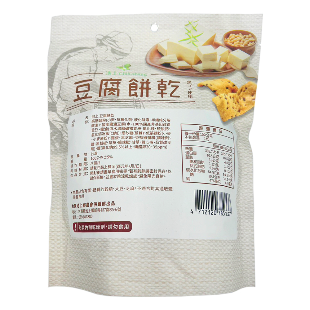 【嚴選零食】池上豆腐餅乾(100g/包) 池上鄉農會 餅乾 點心 黑芝麻 零嘴 零食 蛋素 團購暢銷 台東池上【嚴選零食】池上豆腐餅乾(100g/包) 池上鄉農會 餅乾 點心 黑芝麻 零嘴 零食 蛋素 團購暢銷 台東池上Others日初良食-窈窕輕生活的好朋友