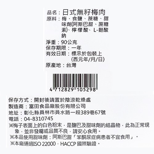 有顆梅 日式無籽梅肉(90g) 零食 乾貨 解嘴饞 酸甜口感 獨立包裝 MIT零嘴 台版【小三美日】D105298單一Dried Snacks小三美日