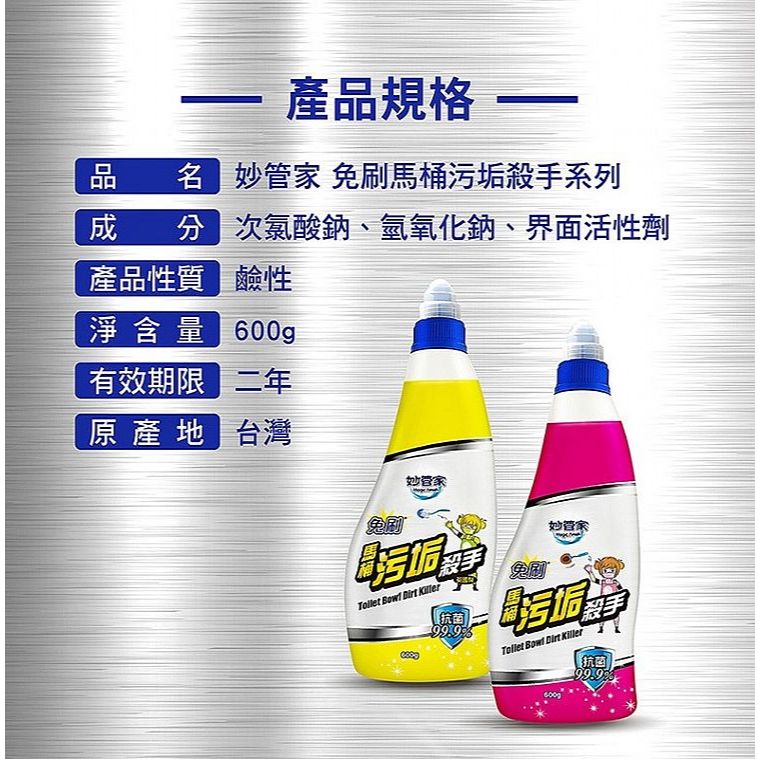 妙管家 免刷馬桶污垢殺手(600ml) 清潔 除尿垢 廁所除臭 馬桶清潔劑 馬桶 免刷【小三美日】DS025521馬桶污垢殺手|馬桶污垢殺手(英國梨)Cleaning Agents小三美日