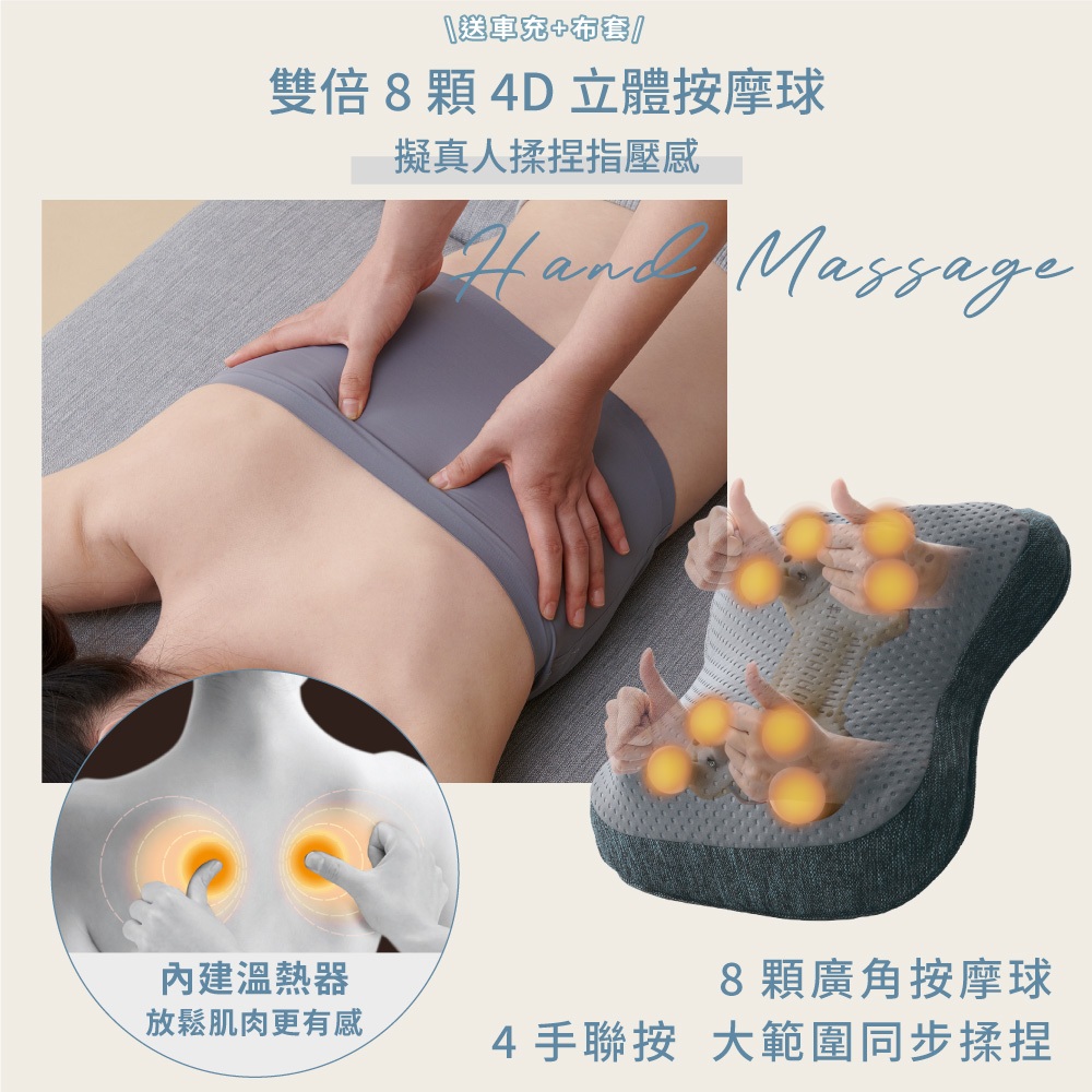 ATEX Lourdes薄型溫熱揉捏按摩枕(車用/家用)-附贈車充/米色布套 AX-HCL258S 葫蘆|官方旗艦館藏青藍 (附贈奶霜杏布套)Massage & Therapy Devices日本ATEX官方旗艦館
