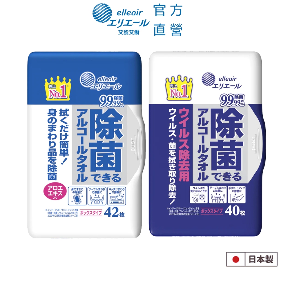 日本大王elleair 家庭清潔除菌酒精濕巾 盒裝 42抽/40抽除菌_蘆薈配方(42抽)|抗菌升級版PLUS(40抽)|除菌_蘆薈配方(42抽) x3盒|抗菌升級版PLUS(40抽) x3盒Wipes日本大王elleair 官方旗艦店