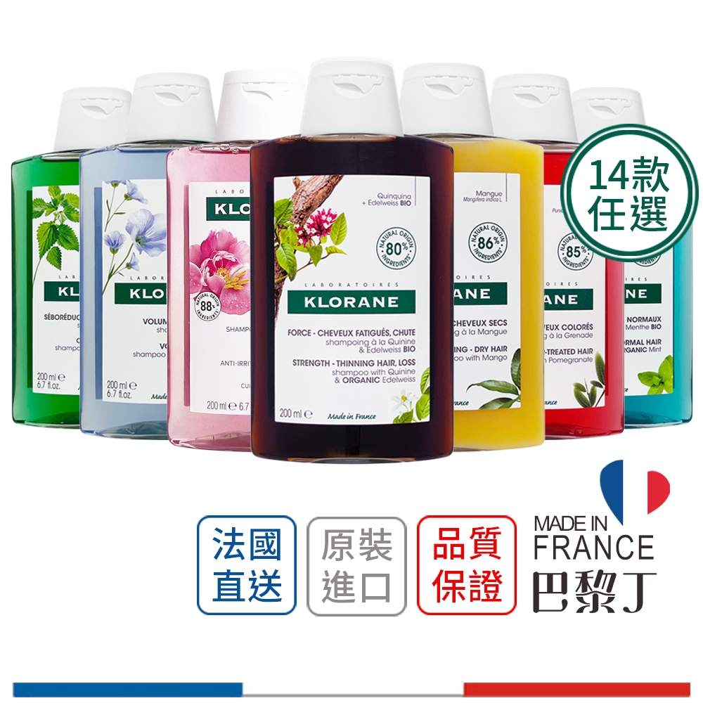 蔻蘿蘭 Klorane 植物洗髮精 200ml 奎寧養髮 蕁麻控油 量感澎鬆 芍藥舒敏【巴黎丁】𝙏𝙤𝙥1 奎寧養髮,200ml|𝙏𝙤𝙥1 奎寧養髮,400ml|𝙏𝙤𝙥2 蕁麻控油,200ml|𝙏𝙤𝙥2 蕁麻控油,400ml|𝙏𝙤𝙥3 速效舒敏,200ml|𝙏𝙤𝙥3 速效舒敏,400ml|燕麥全效溫和,200ml|燕麥全效溫和,400ml|淨透輕盈|檸檬胺基酸,200ml|淨透輕盈|檸檬胺基酸,400ml|柔順 (原 甜扁桃豐盈),200ml|柔順 (原 甜扁桃豐盈),400ml|橄欖抗老|強化毛絲韌度,200ml|橄欖抗老|強化毛絲韌度,400ml|紅石榴護色|染後持色,200ml|紅石榴護色|染後持色,400ml|炎夏🔆頭皮淨化涼感,200ml|炎夏🔆頭皮淨化涼感,400ml|髮芯修護|深度修護,200ml|髮芯修護|深度修護,400ml|豐盈澎鬆|扁塌造型,200ml|豐盈澎鬆|扁塌造型,400ml|滋養修護|燙染修護,200ml|滋養修護|燙染修護,400ml|時光福利|石榴護色|染後持色_26.03,200ml|時光福利|石榴護色|染後持色_26.03,400ml|仙人掌|深層補水,200ml|仙人掌|深層補水,400mlShampoo巴黎丁 – 法國美妝保養直營店