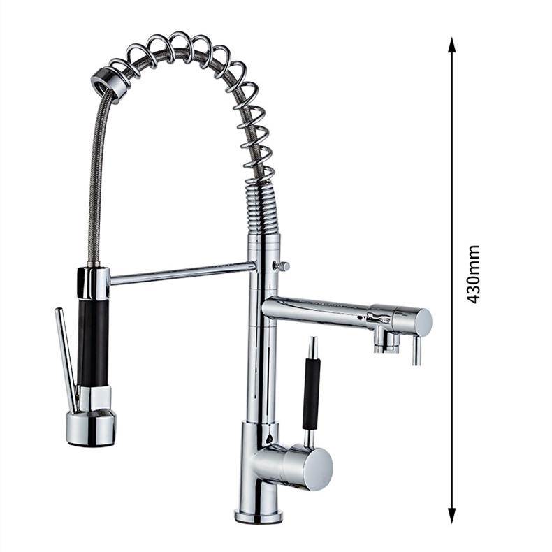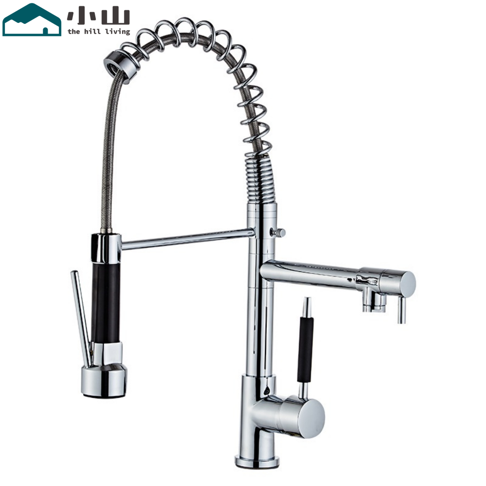 【小山】全銅高壓拉絲彈簧廚房水龍頭抽拉式冷熱水槽洗菜盆伸縮花灑水龍頭彈簧水龍頭Showerheads & Bidet Sprays小山品牌旗艦店