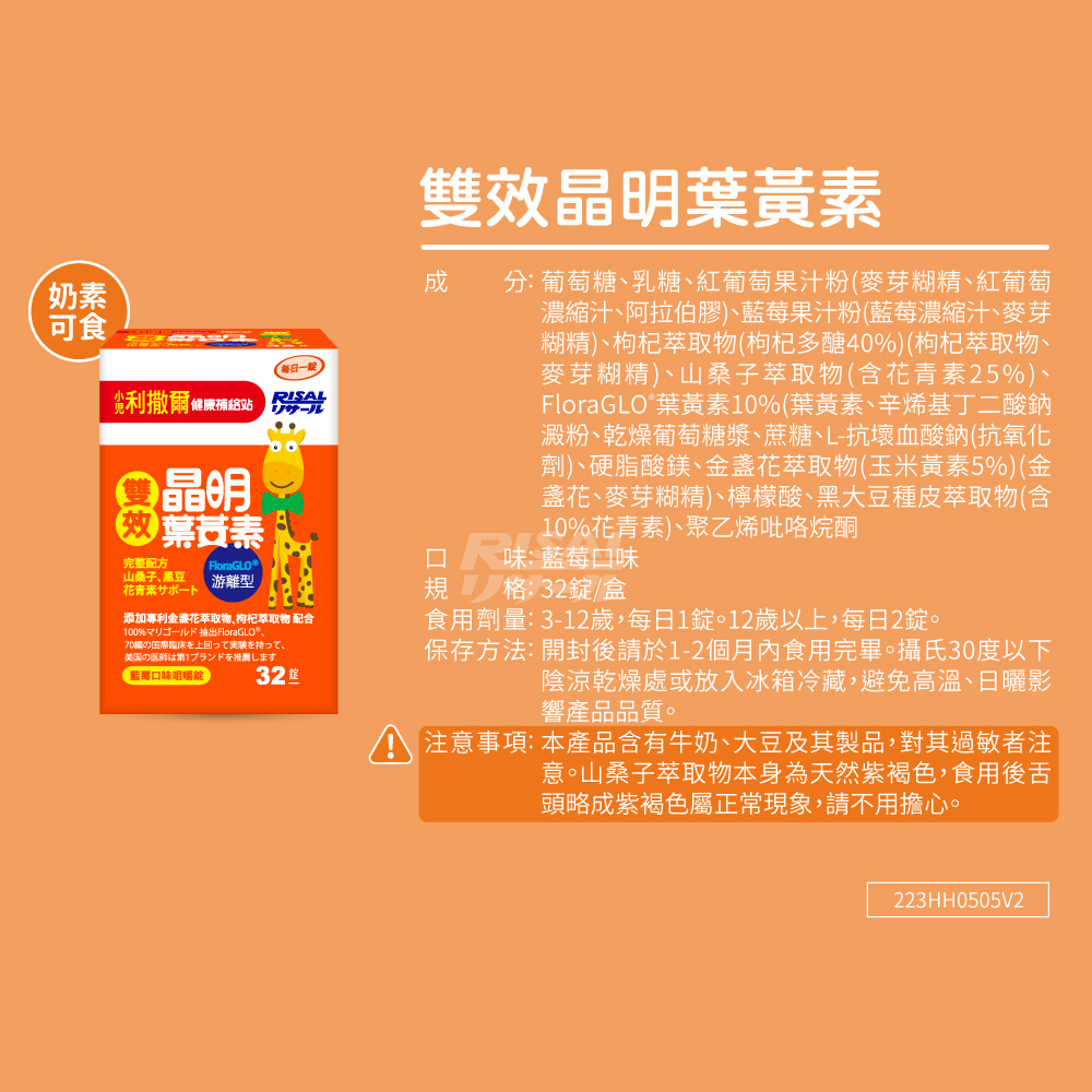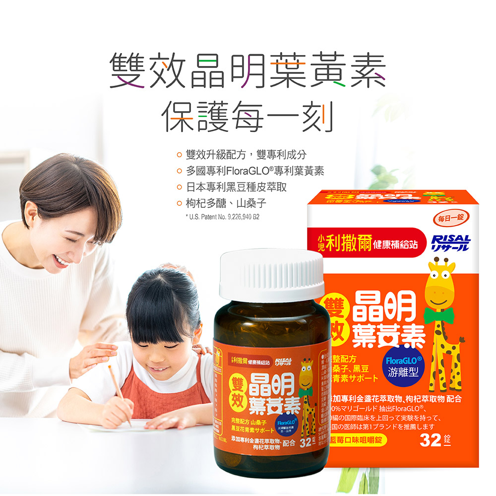 [小兒利撒爾]雙效晶明葉黃素 32錠/瓶(兒童葉黃素游離型咀嚼錠)一盒|三盒Baby Vitamins & Supplements小兒利撒爾Risal官方旗艦店