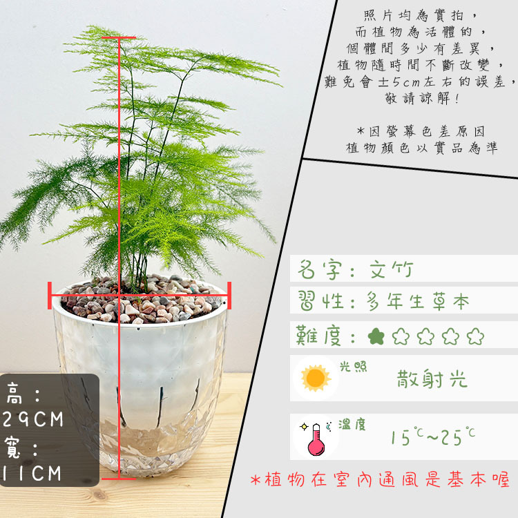 【小品文化】文竹【現貨】4吋鑽石免澆水盆栽 室內植物 室內盆栽 懶人盆栽 水培植物 水培盆栽 室內盆栽 觀葉植物文竹+4鑽石盆Plants小品文化-免澆水盆栽