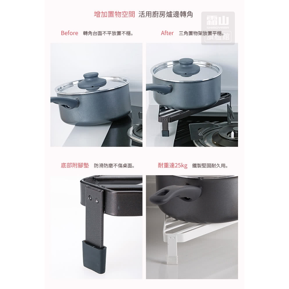 多功能鍋壺爐邊轉角/桌角金屬隔熱置物架【日本霜山旗艦館】簡約白|深黑棕Kitchen Racks日本霜山SHIMOYAMA旗艦館|台灣獨家總代理