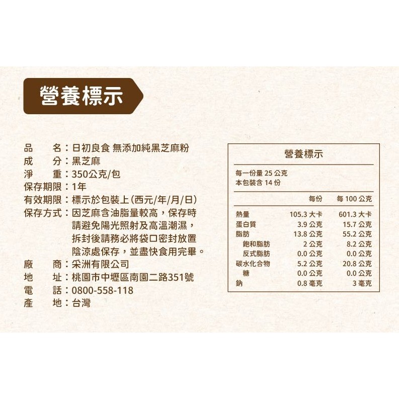 日初良食|純黑芝麻粉-無糖(350g/包) 無榨油 純天然 無添加 高鈣 高膳食纖維 黑穀粉