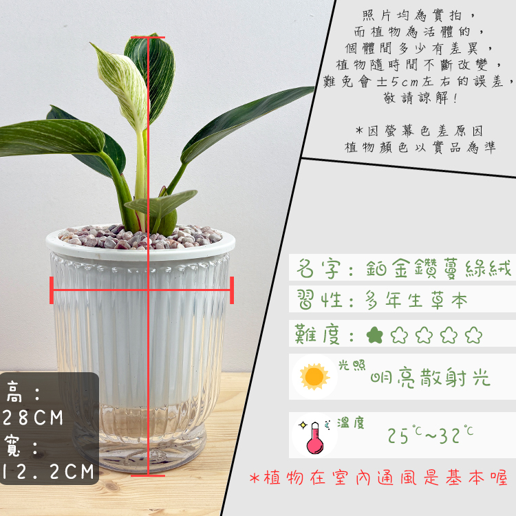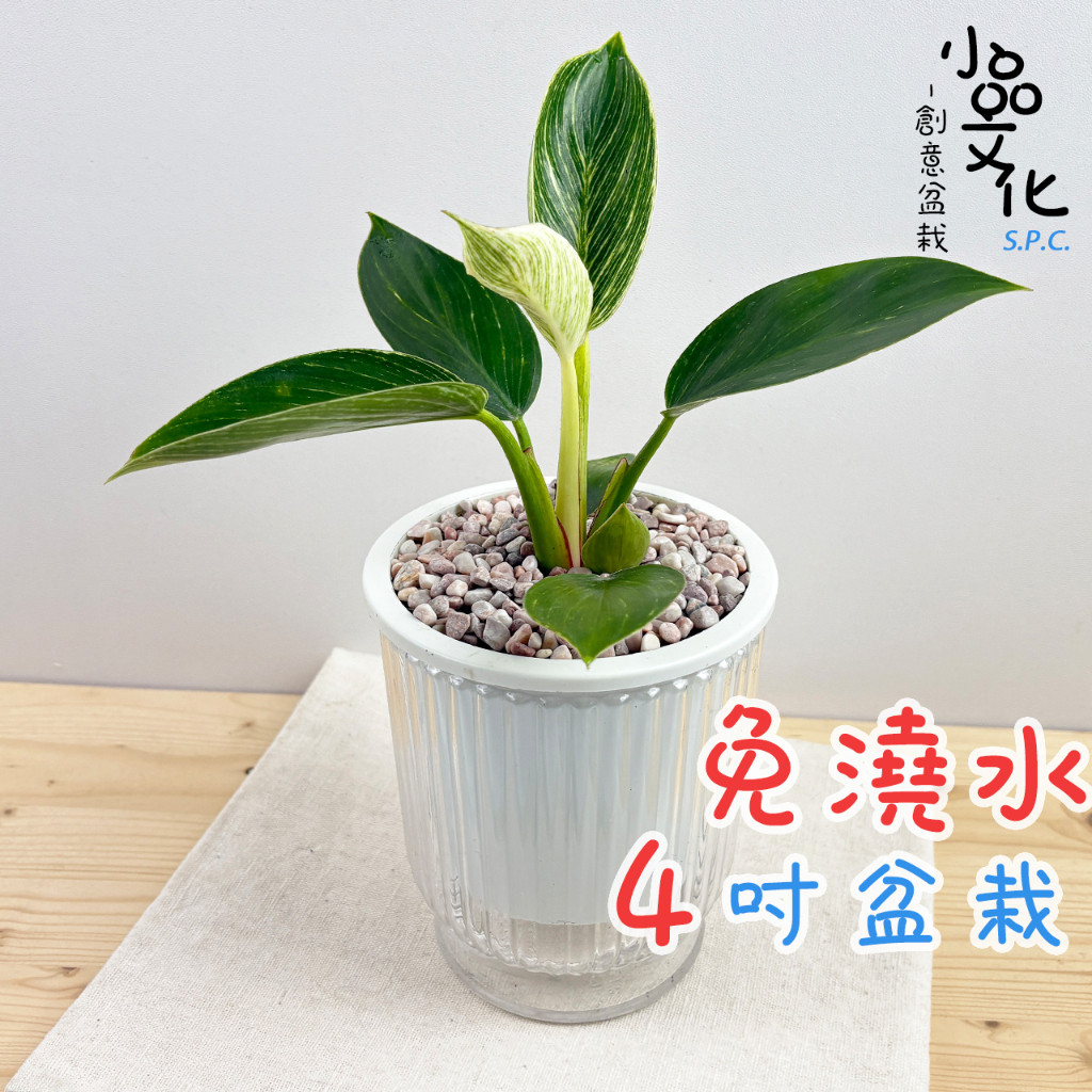【小品文化】鉑金鑽蔓綠絨【現貨】4吋透明條紋免澆水盆栽 室內植物 室內盆栽 懶人盆栽 水培盆栽 室內盆栽 觀葉植物鉑金鑽蔓綠絨+4吋透明條紋盆-白盆|鉑金鑽蔓綠絨+4吋透明條紋盆-灰盆Plants小品文化-免澆水盆栽