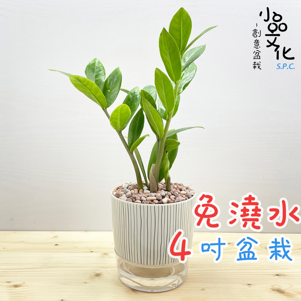 【小品文化】金錢樹【現貨】4吋仿瓷免澆水盆栽 室內植物 室內盆栽 懶人盆栽 水培植物 水培盆栽 室內盆栽 觀葉植物