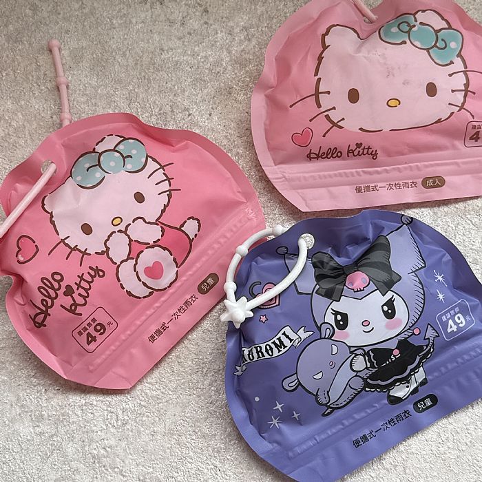 【SANRIO 三麗鷗】便攜式 一次性雨衣 (1入) 雨衣 輕便雨衣 拋棄式雨衣 成人雨衣 兒童雨衣 DS025029成人雨衣-酷洛米款|成人雨衣-Hello_Kitty款|兒童雨衣-酷洛米款|兒童雨衣-Hello_Kitty款Rain Coats小髮廊 Hair Salon