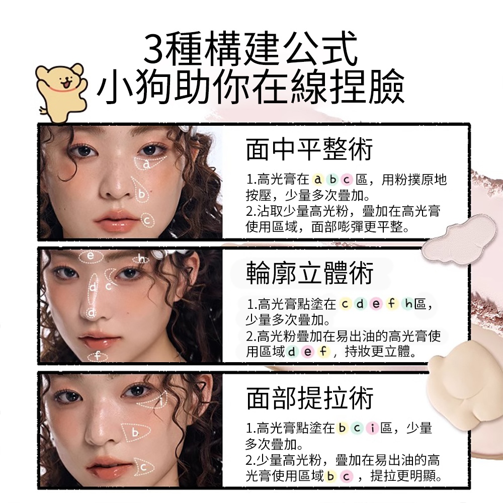 小奧汀Little ondine線條小狗立體高光膏盤霧面臉部提亮凹陷【台灣官方旗艦店】01發光奶杏 + 拇指粉撲|02發光嫩粉 + 拇指粉撲Face小奧汀LITTLE ONDINE 台灣官方旗艦店