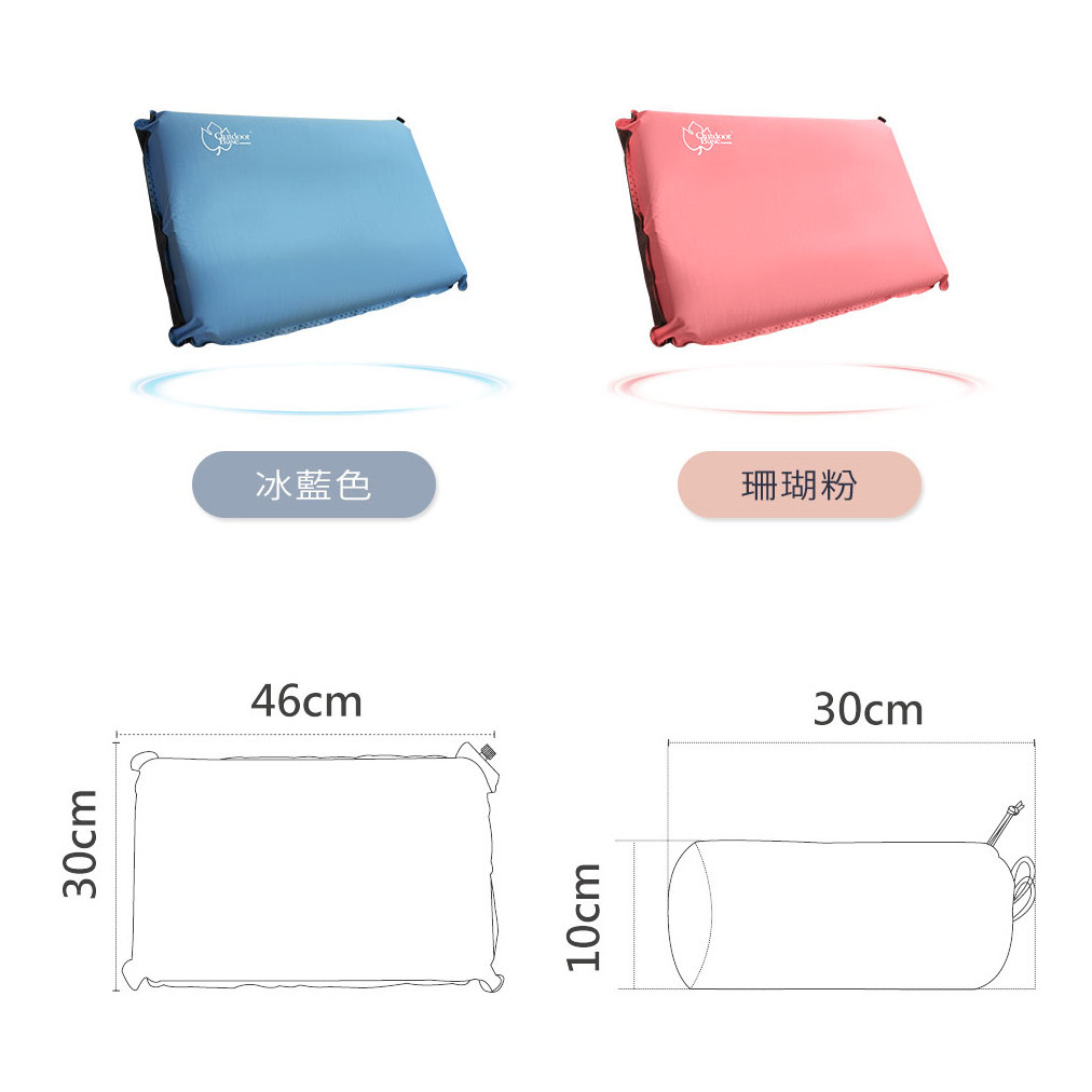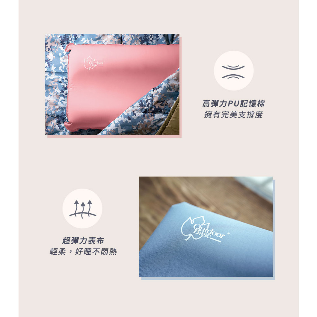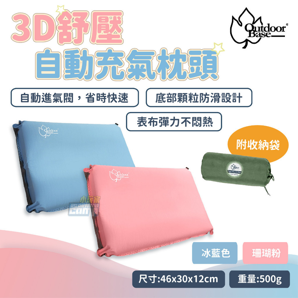 Outdoorbase 3D 舒壓自動充氣枕頭 人體工學設計 表布彈力不悶熱 充氣枕 自動充氣枕冰藍色|珊瑚粉Camping & Hiking小玩家露營生活旗艦館