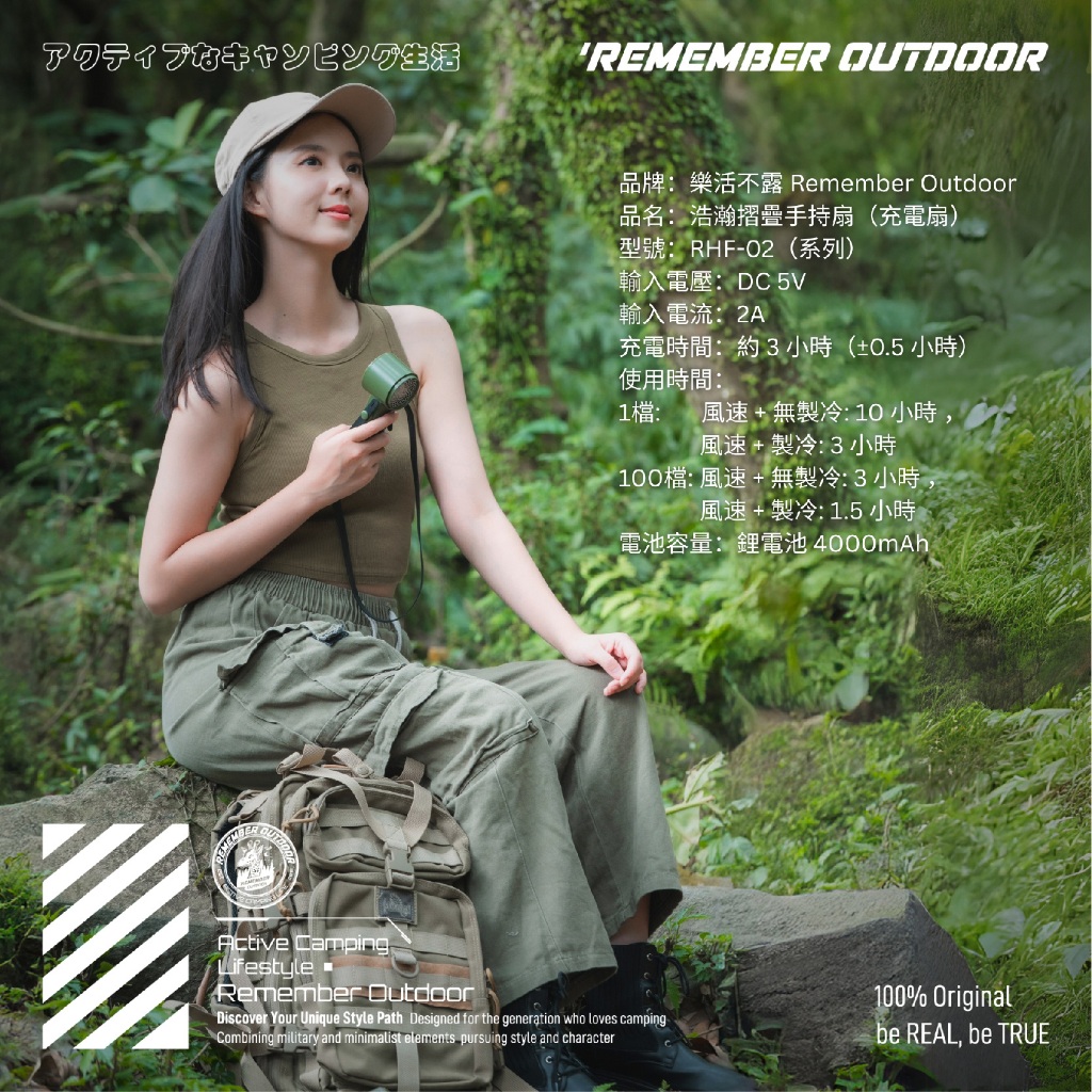 Remember Outdoor 樂活不露 浩瀚摺疊手持扇 手持扇 摺疊手持扇 摺疊扇 風扇 製冷 露營黑色|沙色|軍綠Camping & Hiking小玩家露營生活旗艦館