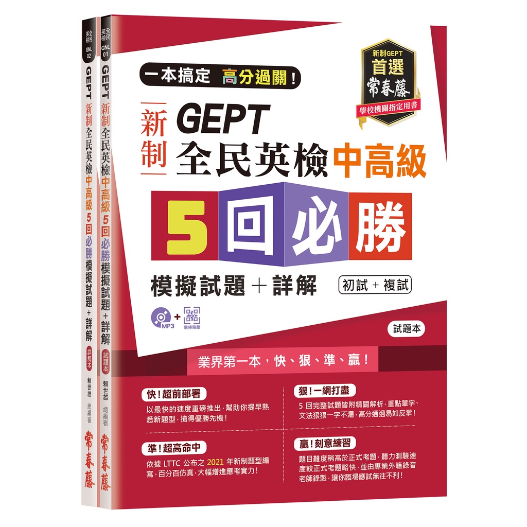【常春藤】一本搞定 高分過關!GEPT 新制全民英檢中高級5 回必勝模擬試題+詳解(初試+複試)》/ 5 回滿分模擬試題/賴世雄全民英檢中高級5 回必勝模擬試題+詳解|全民英檢中高級 5 回滿分模擬試題+詳解Language Learning & Dictionaries五車 商城