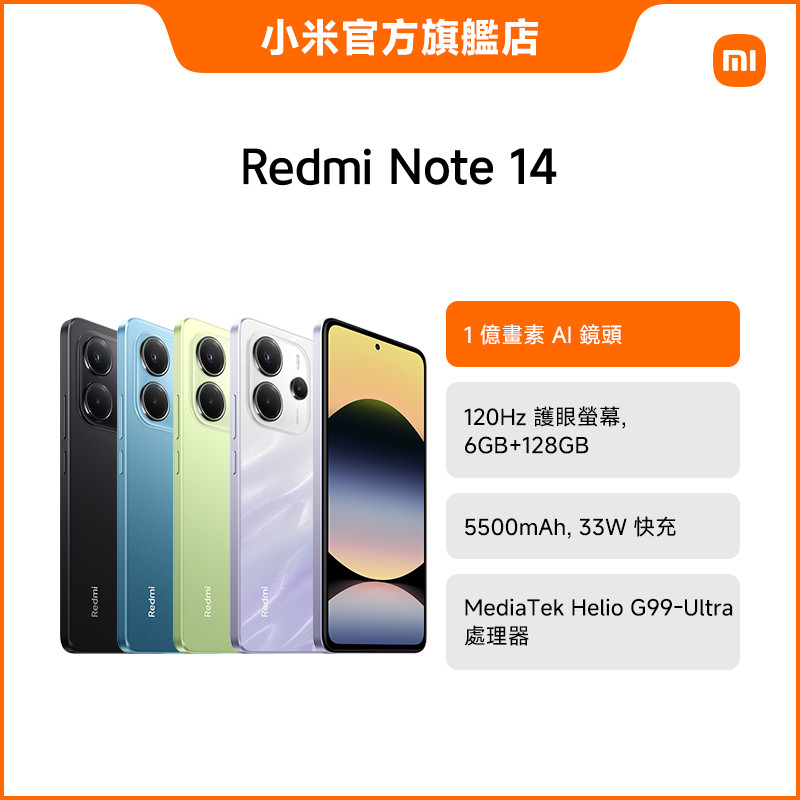 Redmi Note 14 6GB+128GB【小米官方旗艦店】紅米 1億 120Hz 33W 5500mAh午夜黑|海洋藍|青檸綠|迷霧紫小米官方旗艦店
