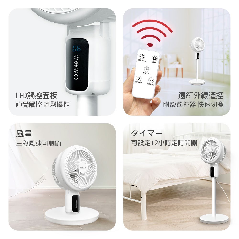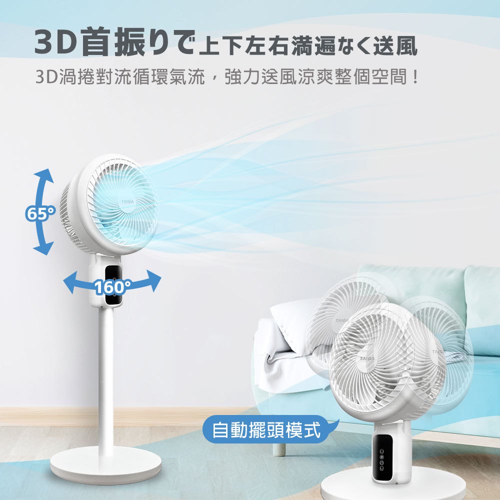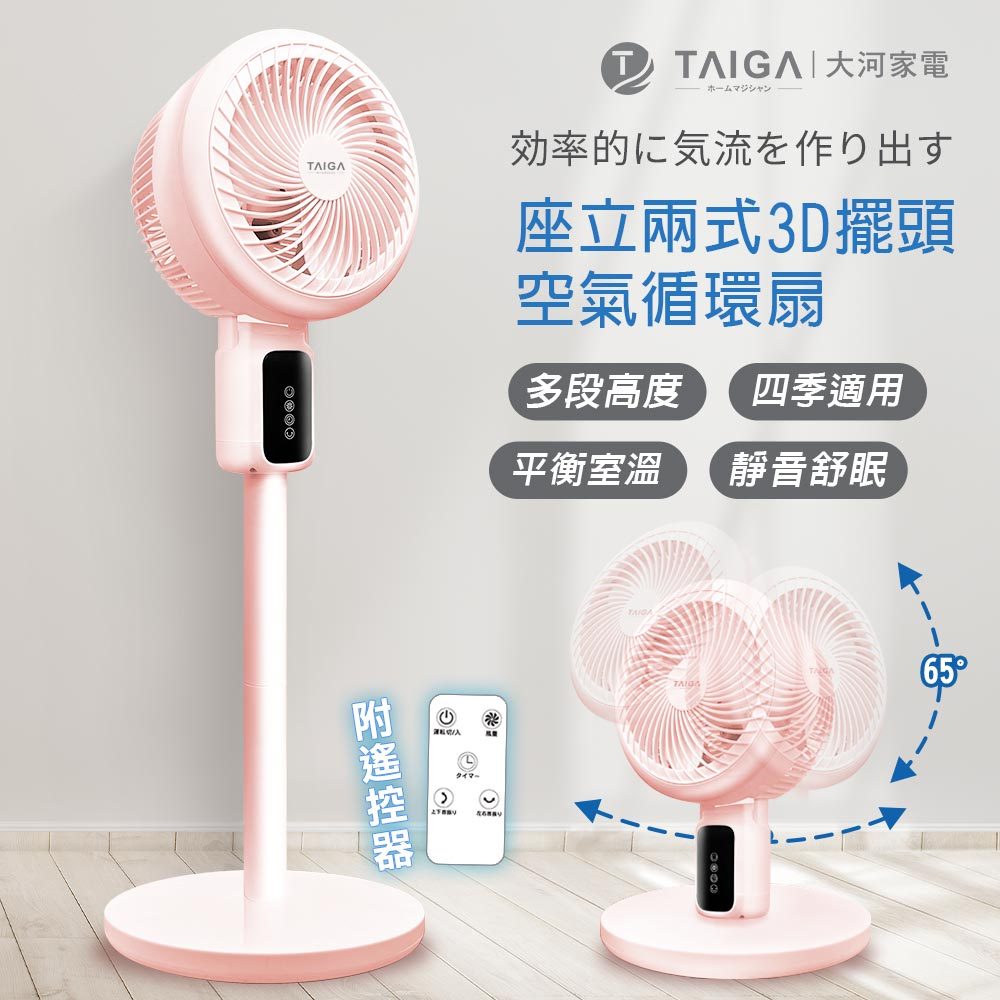 【TAIGA大河】全方位3D 擺頭送風 座立兩式空氣循環扇 BSMI認證字號R34785 電風扇 桌扇 立扇白色|粉色|綠色Cooling日本TAIGA 大河家電