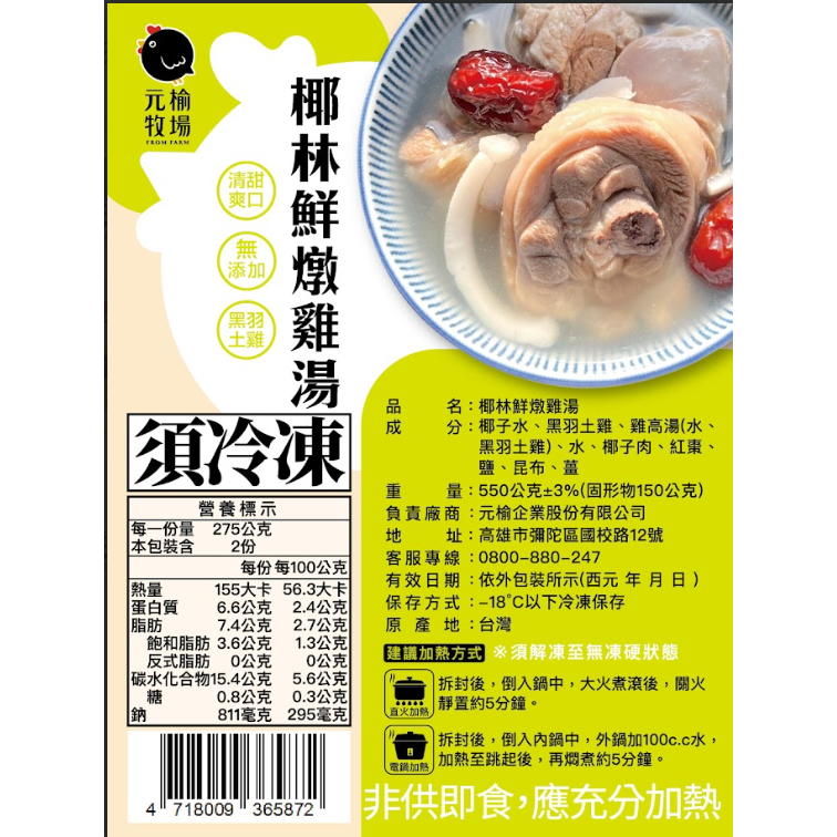 【元榆牧場】元榆天然回甘椰林鮮燉雞湯-小包裝(550g)【元榆牧場】元榆天然回甘椰林鮮燉雞湯-小包裝(550g)Stock, Gravy & Instant Soup元榆牧場FROMFARM