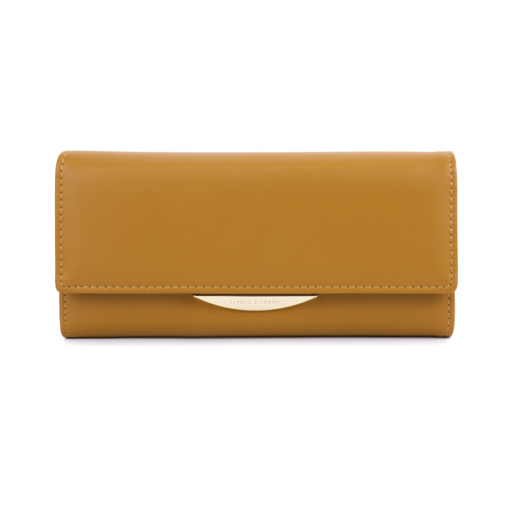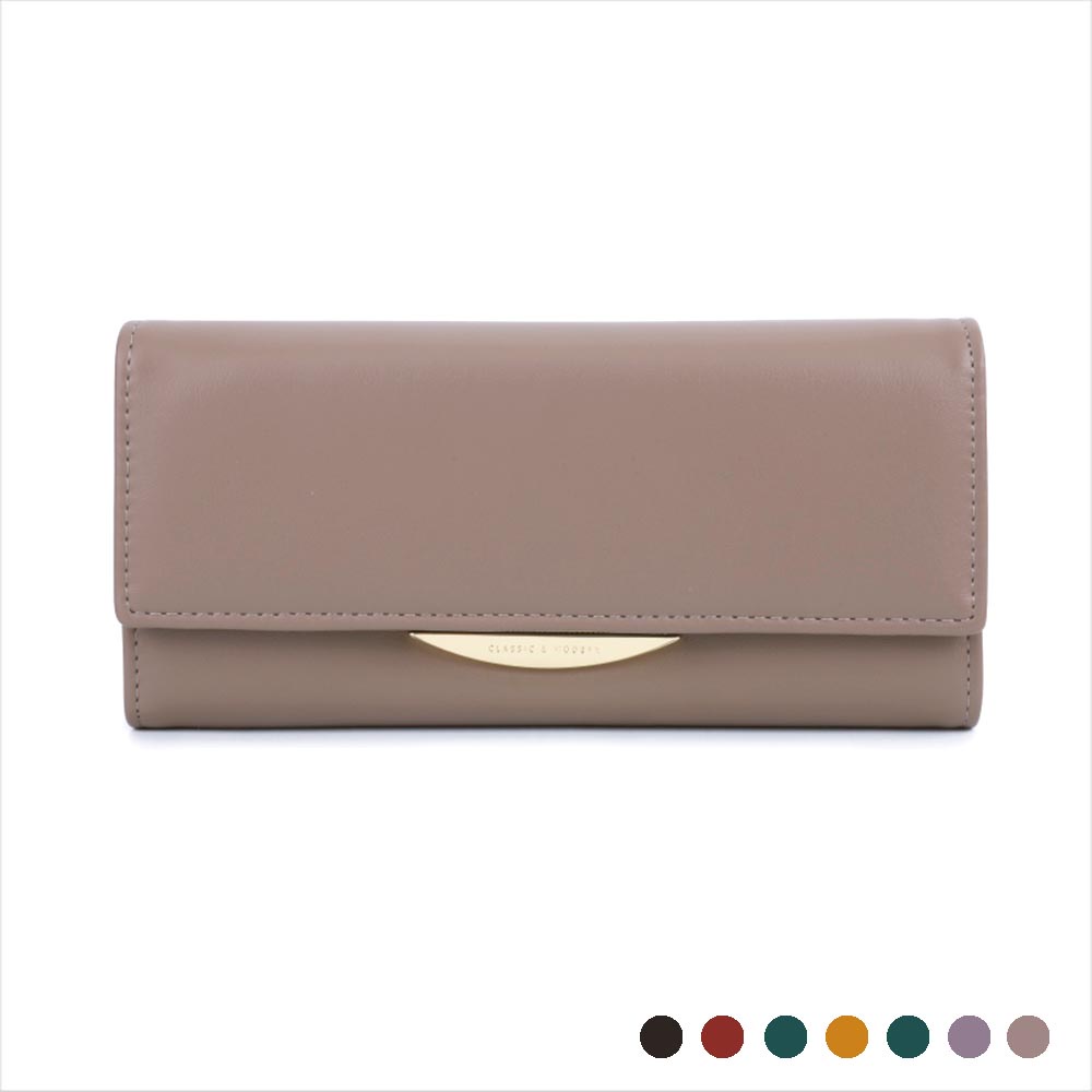天藍小舖-質感弧形金條字母翻蓋皮革長夾-共7色-A08081704黃色|黑色|綠色|杏色|紅色|粉色|紫色Long Wallets天藍小舖 SkyBlue