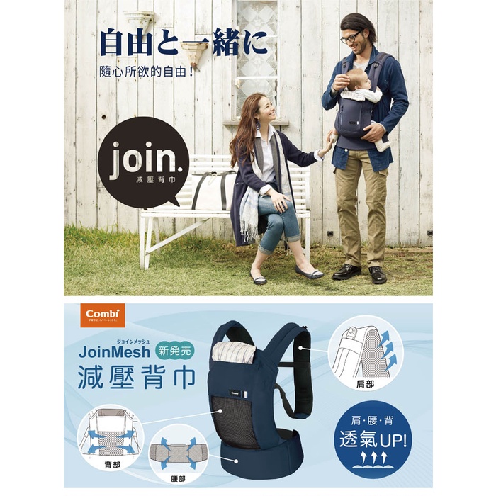 【Combi】Join新生兒全包覆式內墊|需搭配 “Join Mesh 透氣減壓腰帶式背巾 ” 一起使用鬆餅灰|鬆餅米Baby Carrier日本Combi│REGASSA官方旗艦館