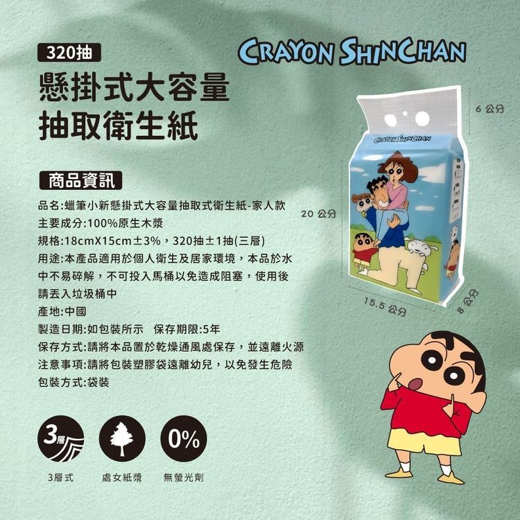 御衣坊 蠟筆小新 懸掛式 大容量 抽取衛生紙 (家人款)320抽 抽取式 衛生紙 面紙【小三美日】DS026915單一Tissue & Paper Towels小三美日