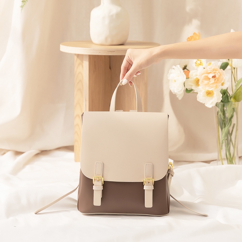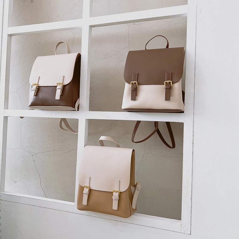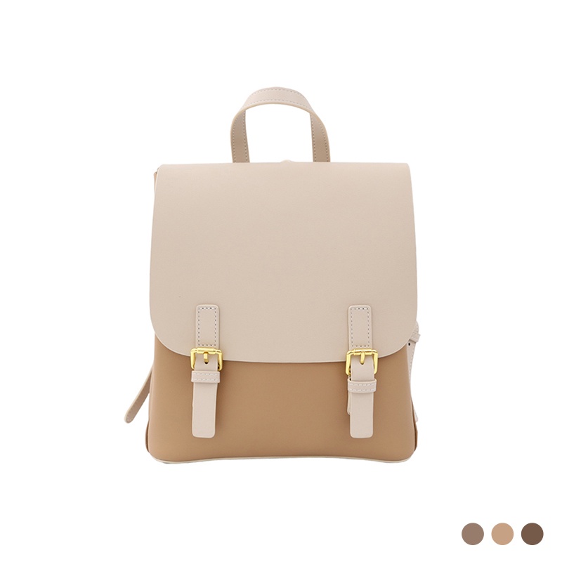 天藍小舖-真皮燕麥拿鐵配色雙皮釦後背包-共3色-A12122181米咖|咖白|杏白天藍小舖 SkyBlue