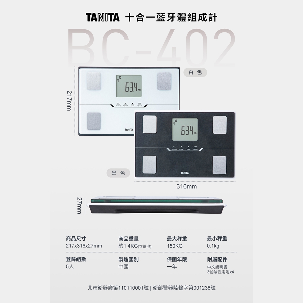 【送暖包】日本TANITA 十合一藍芽智能體組成計 BC-402-台灣公司貨 (兩色任選)白色|黑色Others日本TANITA 台灣旗艦館