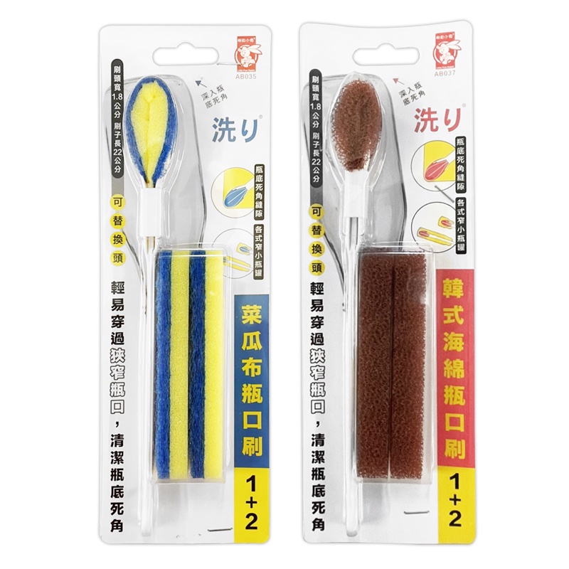 粉彩小兔 韓式海綿/菜瓜布瓶口刷 (1+2附替換頭) 水瓶刷 奶瓶刷 縫隙刷 凹槽刷 瓶刷 清潔刷韓式海綿瓶口刷1+2|菜瓜布瓶口刷1+2Bottle-feeding中聯興家庭五金批發