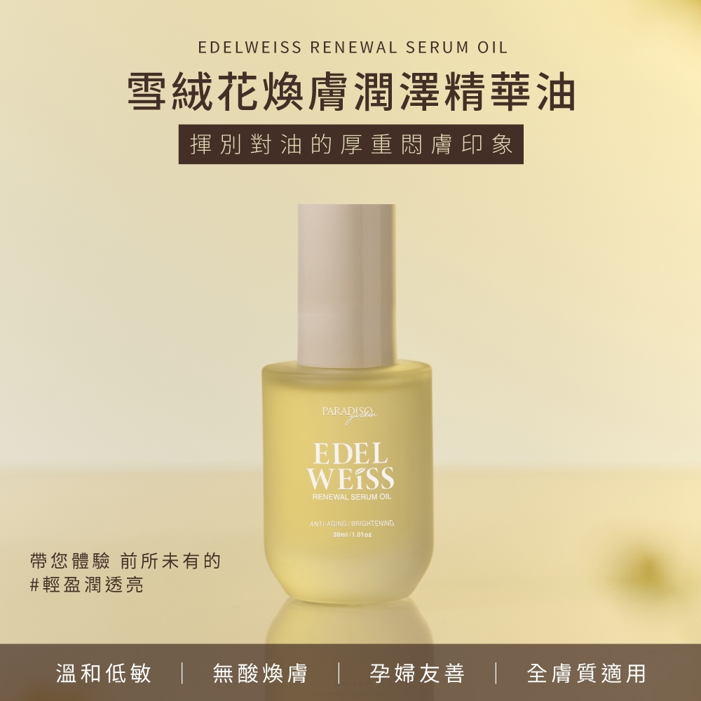 天堂花園 雪絨花煥膚潤澤精華油30ml急救油膚法-精華油+雪絨花面膜14入|無酸煥膚-精華油|煥膚團購組-精華油2入|基礎修護-保濕露+精華油|油霜荷包蛋-精華油+輕乳霜|減齡三明治-保濕露+精華油+輕乳霜Facial Oil天堂花園官方旗艦店