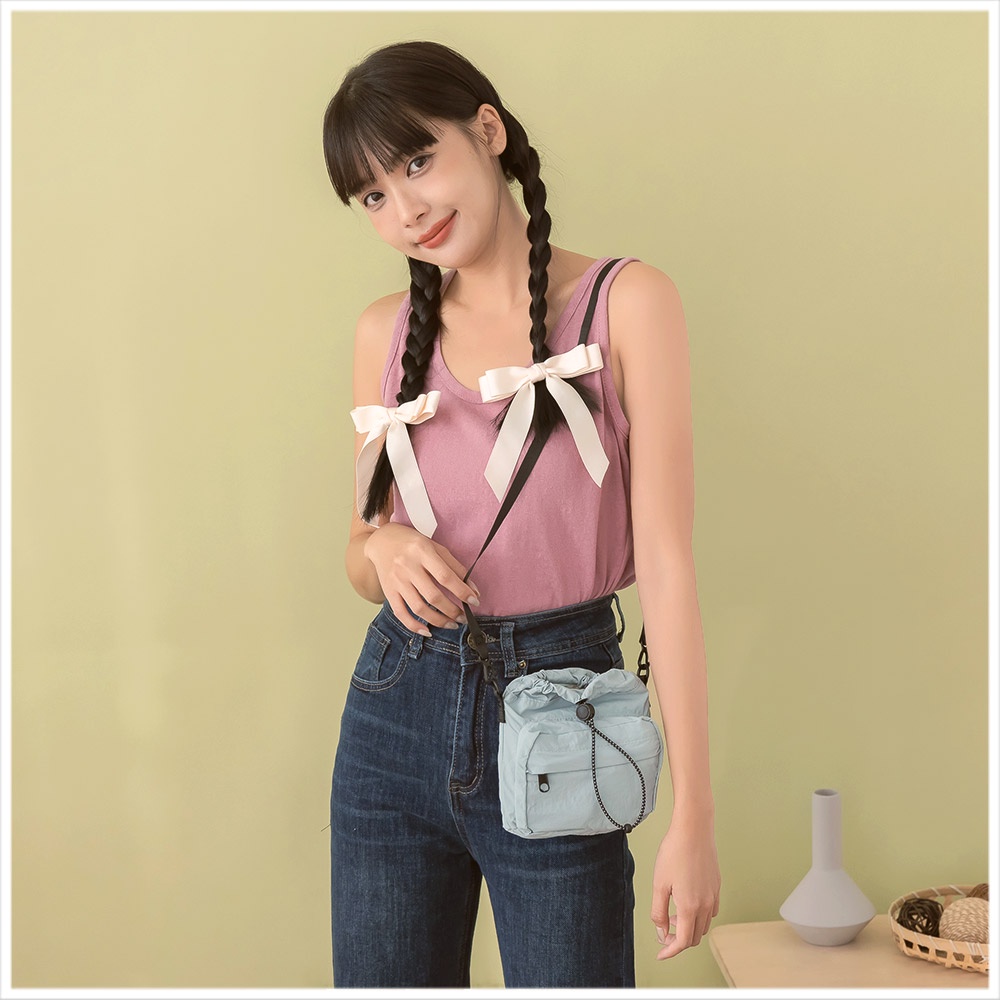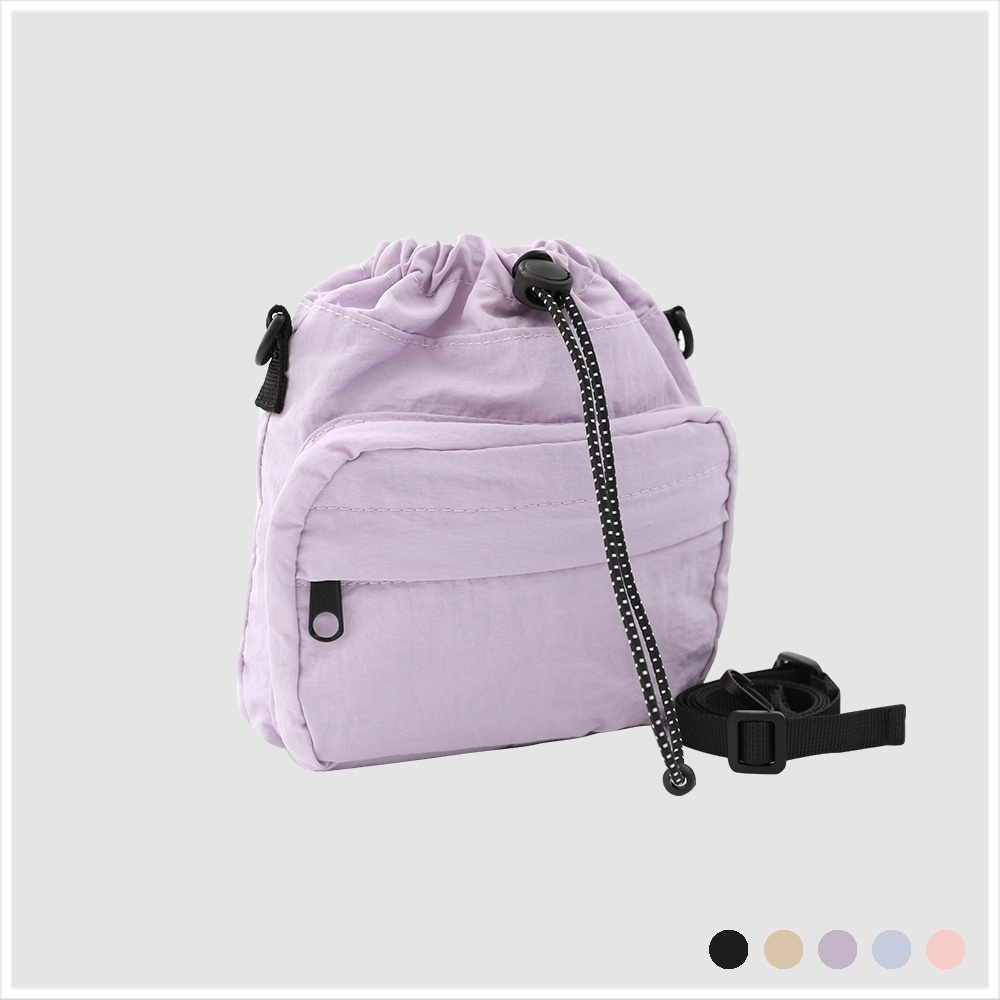 天藍小舖-日風機能束口斜背小包-共5色-A17174718紫色|黑色|藍色|卡其|粉色天藍小舖 SkyBlue