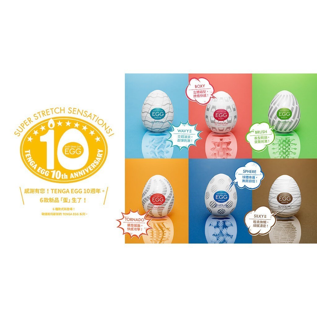 【TENGA】 10週年新品EGG 彈嫩系列 飛機杯 成人用品 自慰杯 情趣玩具 情趣用品 現貨 18禁 【官方直營】WAVY II 交錯波浪|BOXY 立體箱|BRUSH 撚捲刷|TORNADO 螺旋鋸齒|SPHERE 串連球體|SILKY II 濃厚織紋Sex Toys日本TENGA直營官方線上商城