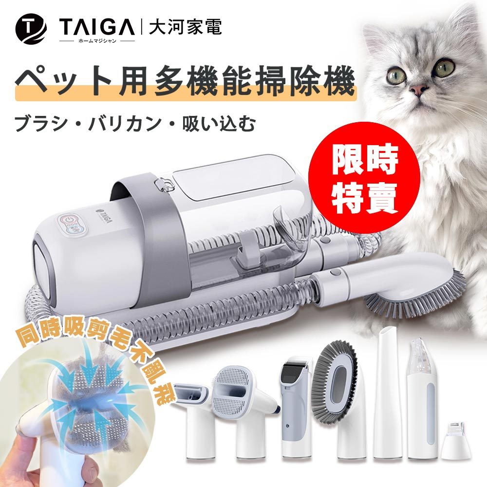 【TAIGA大河】7合1低噪陶瓷電剪吸毛寵物理毛美容機(限時) CB1073 (剃毛/打薄/吸毛回收/修磨指甲)寵物修毛灰色|藍色Others日本TAIGA 大河家電