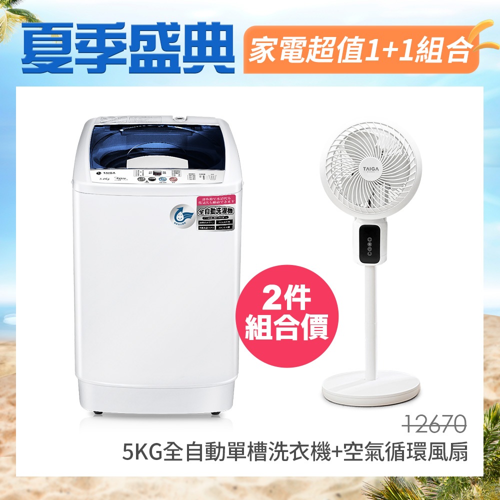 【TAIGA大河】1+1夏一跳 5KG迷你全自動單槽洗脫直立式洗衣機+座立兩用循環電風扇 (超值兩入組) 循環扇兩入組Washing Machines & Dryers日本TAIGA 大河家電